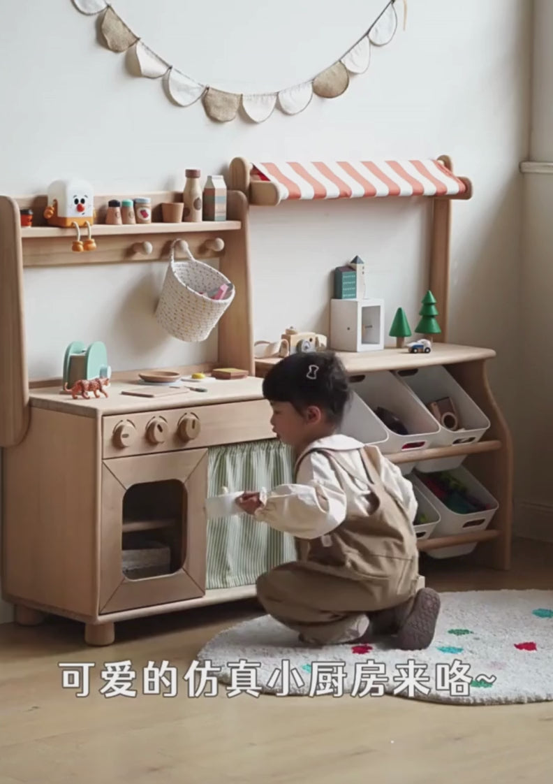 Poplar Solid Wood Montessori Kids Kitchen Cabinet