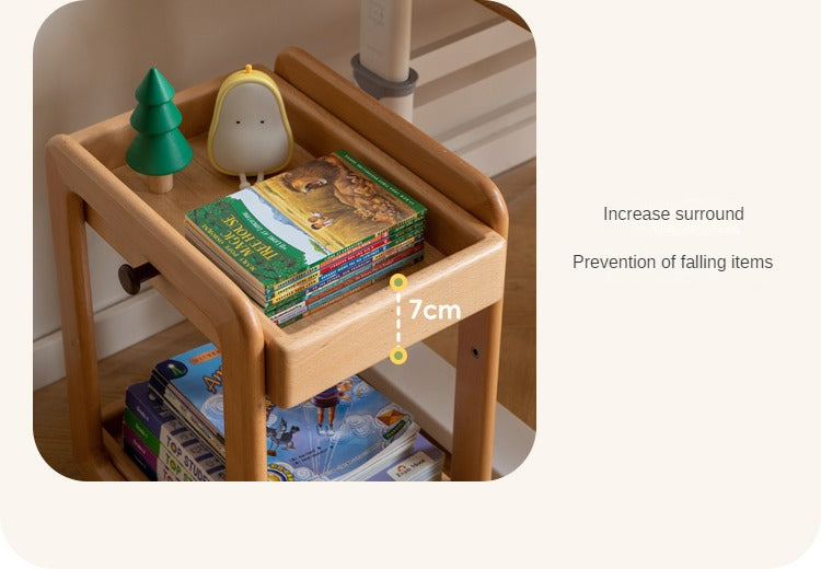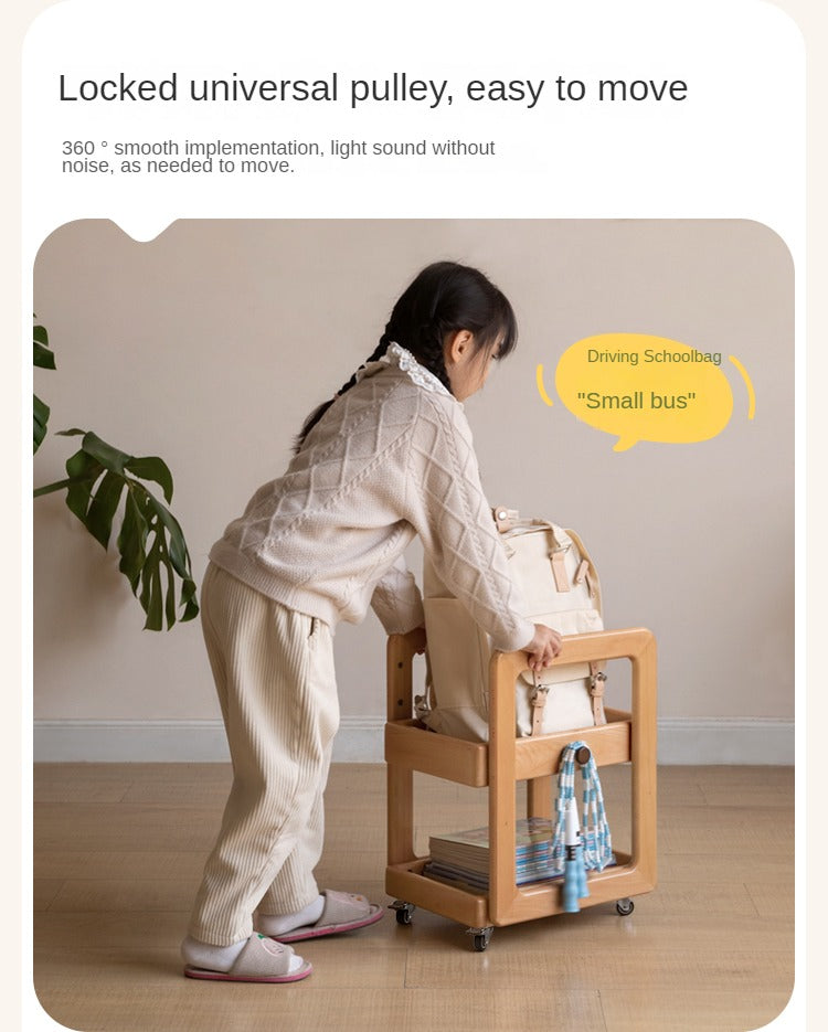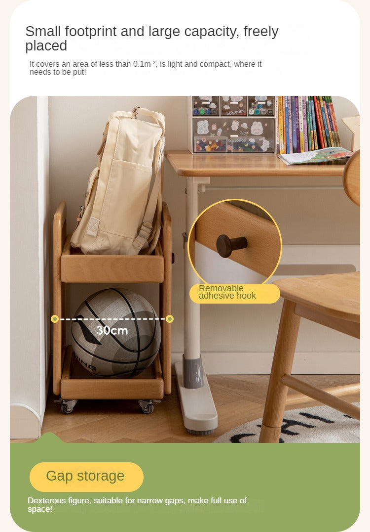 Beech, Rubber Solid Wood Children's Under-the-Table Mobile Modern Storage Rack