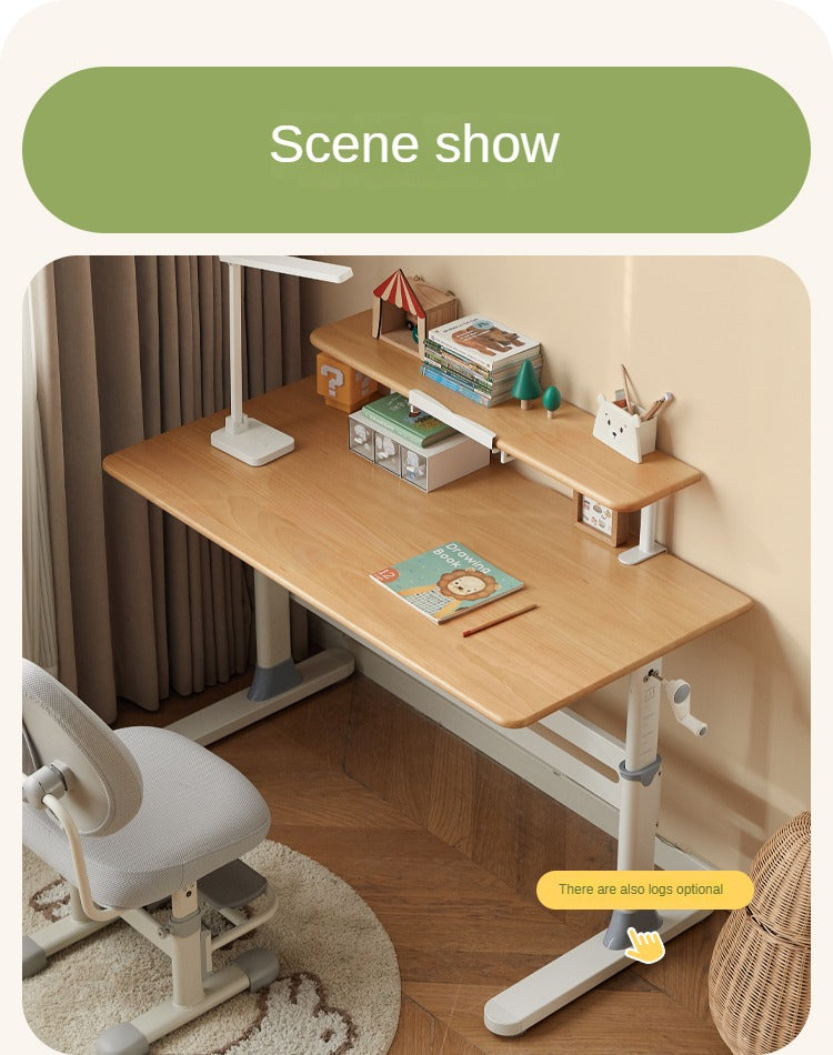 Solid wood children's study desk primary school students home desks and chairs can be raised and lowered desks cream style writing desks