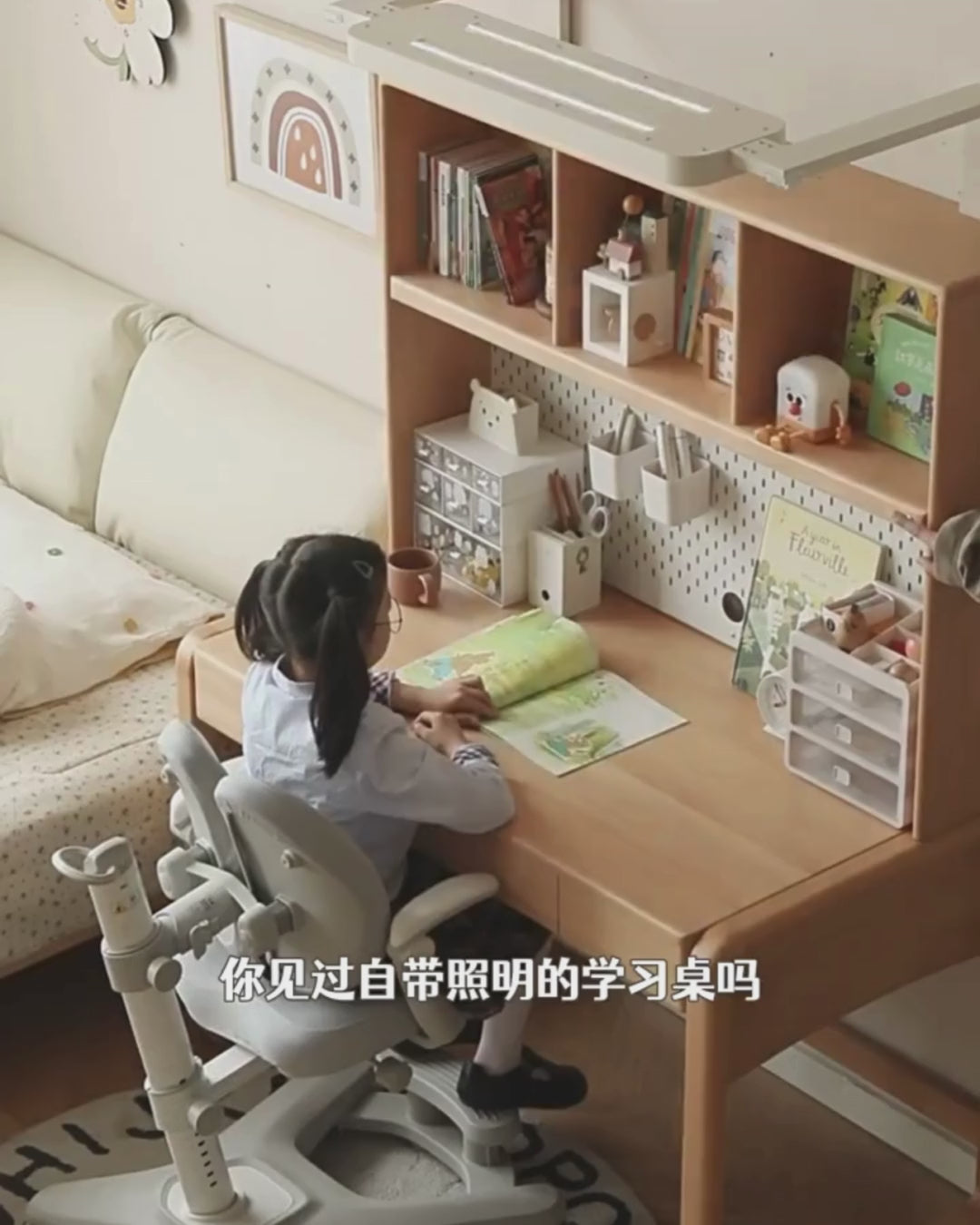 Beech Solid Wood Children's Study Table Eye Protection Lamp