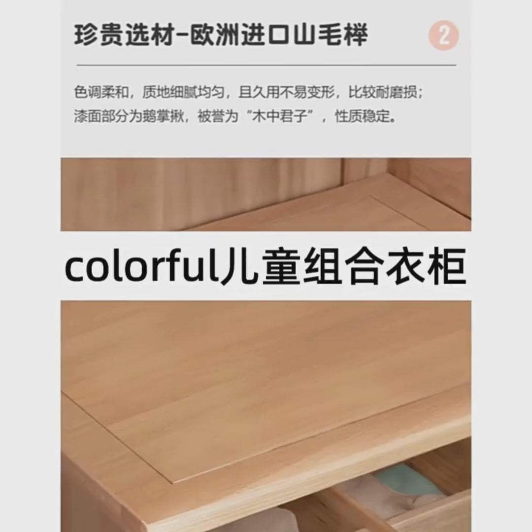 The colored part is made of tulip tree imported from North America, which has good toughness and impact resistance and is a commonly used furniture wood indoors.