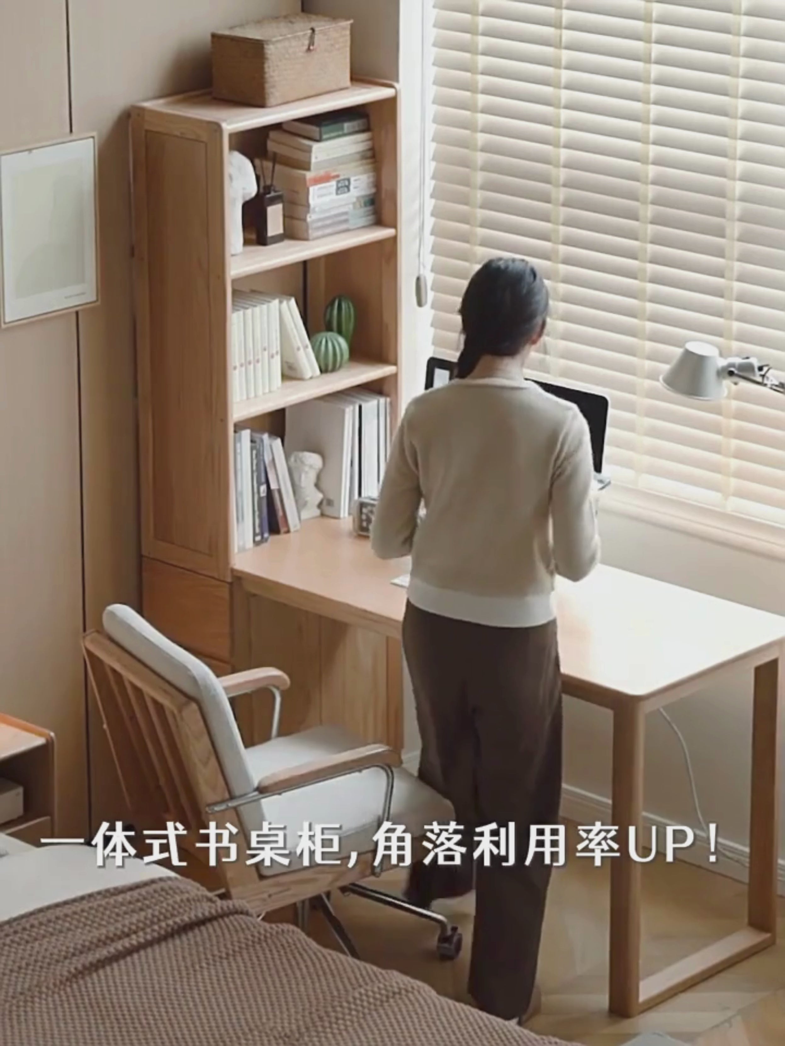 Solid wood desk bookshelf integrated with drawer wall corner office desk simple study computer desk.