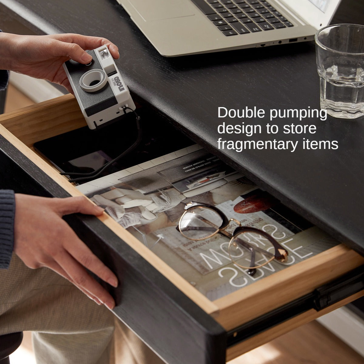 Storage, think about one more step, the desktop can be cleaner. In addition to the two storage drawers, the bottom of the table also adds a storage partition design-you can put books or put your feet here. It's an ideal desk.