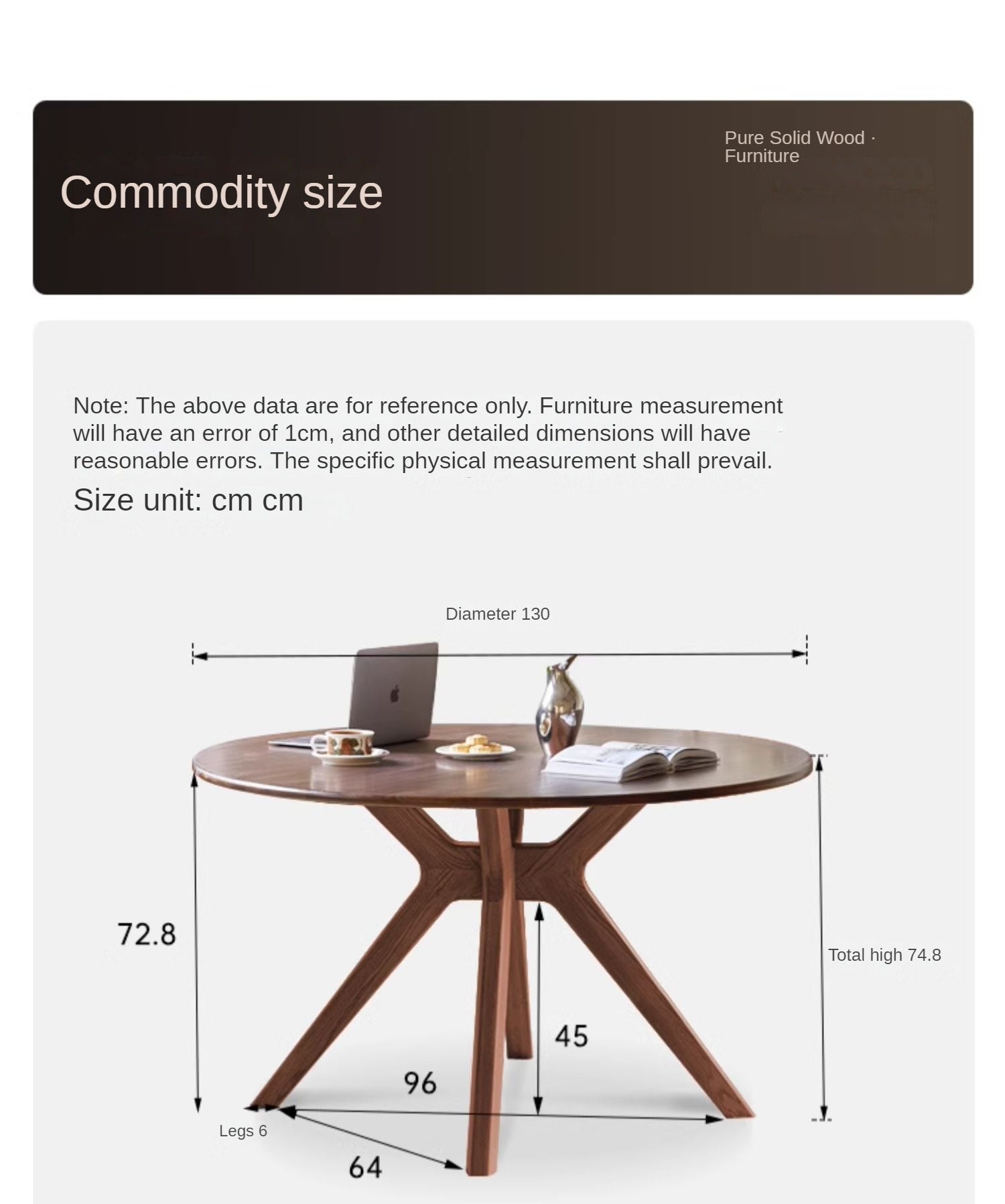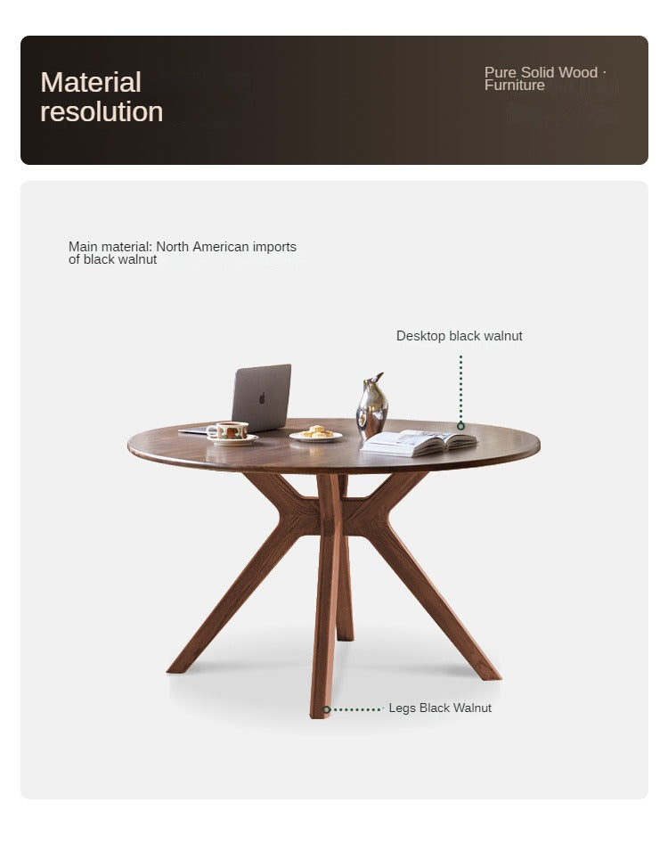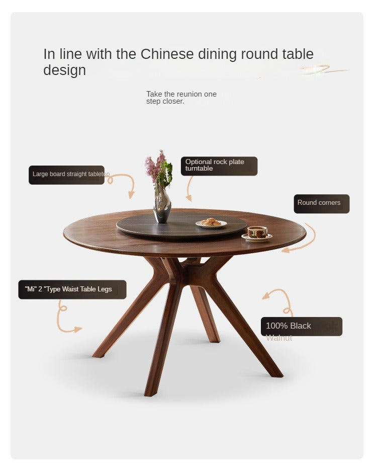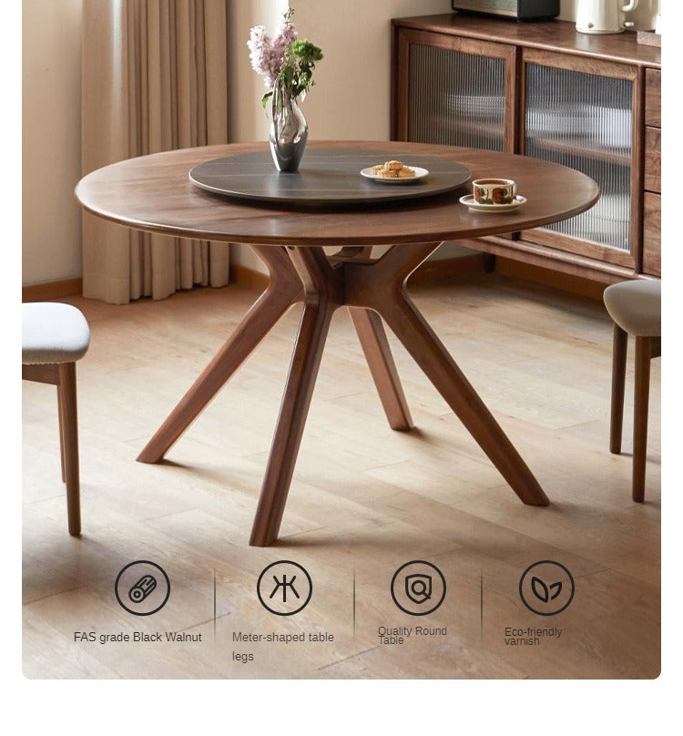 Black Walnut Solid Wood Rock Board Round Table With Turntable