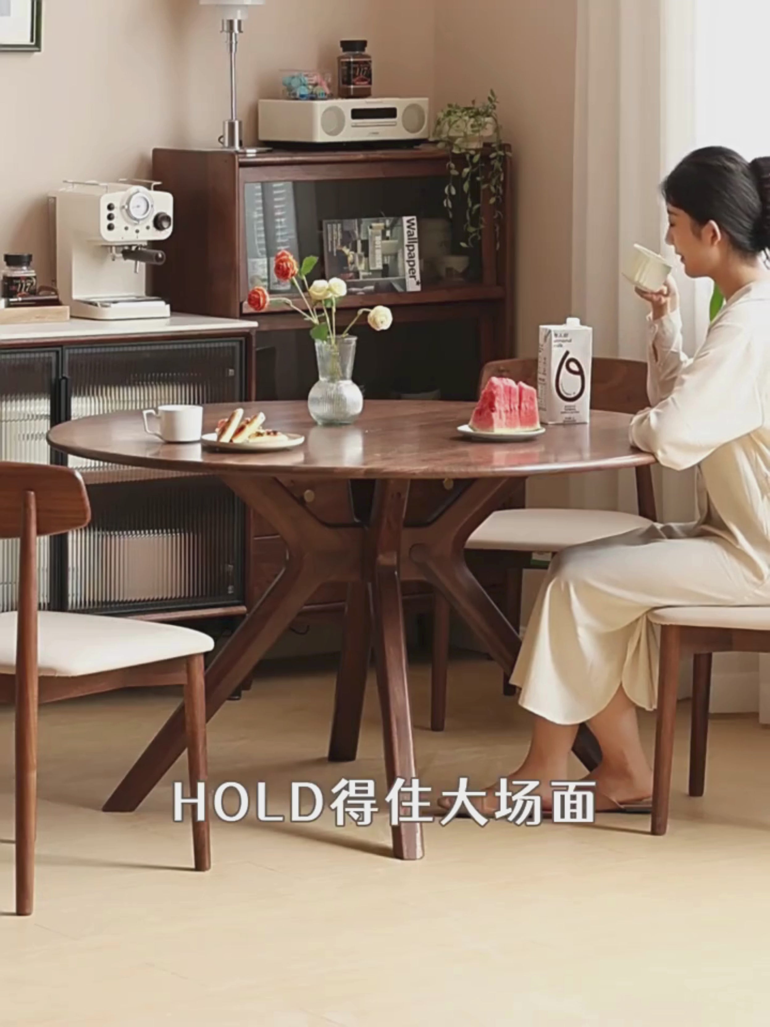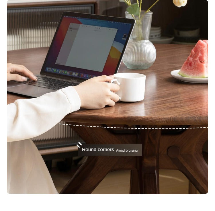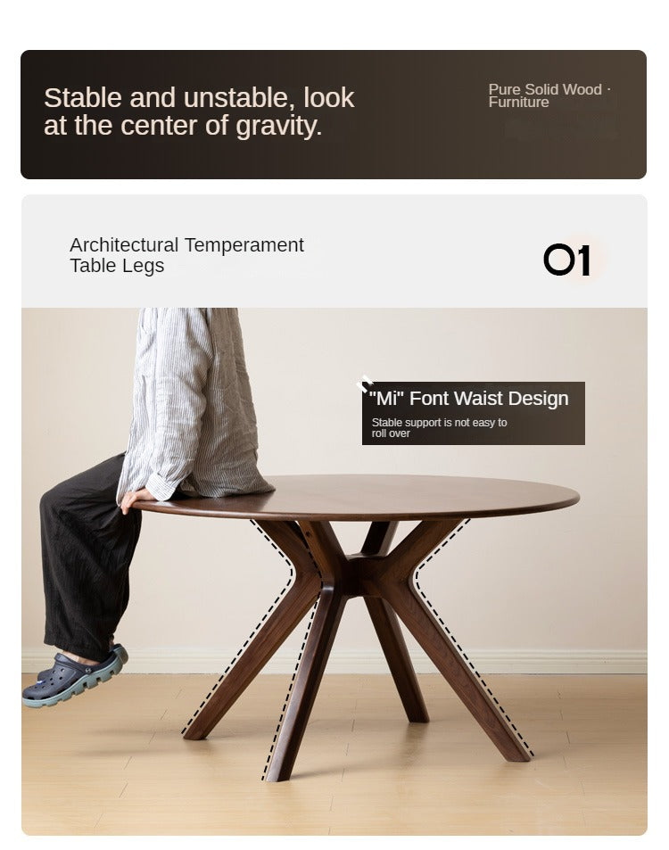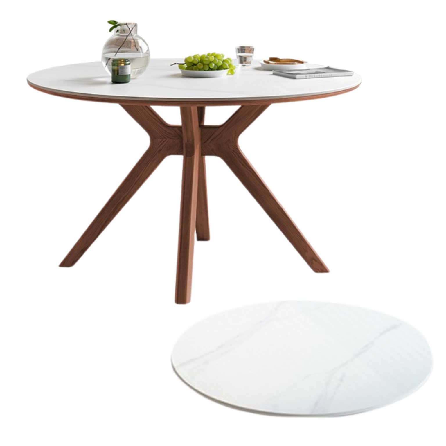 Black Walnut Solid Wood Rock Board Round Table With Turntable
