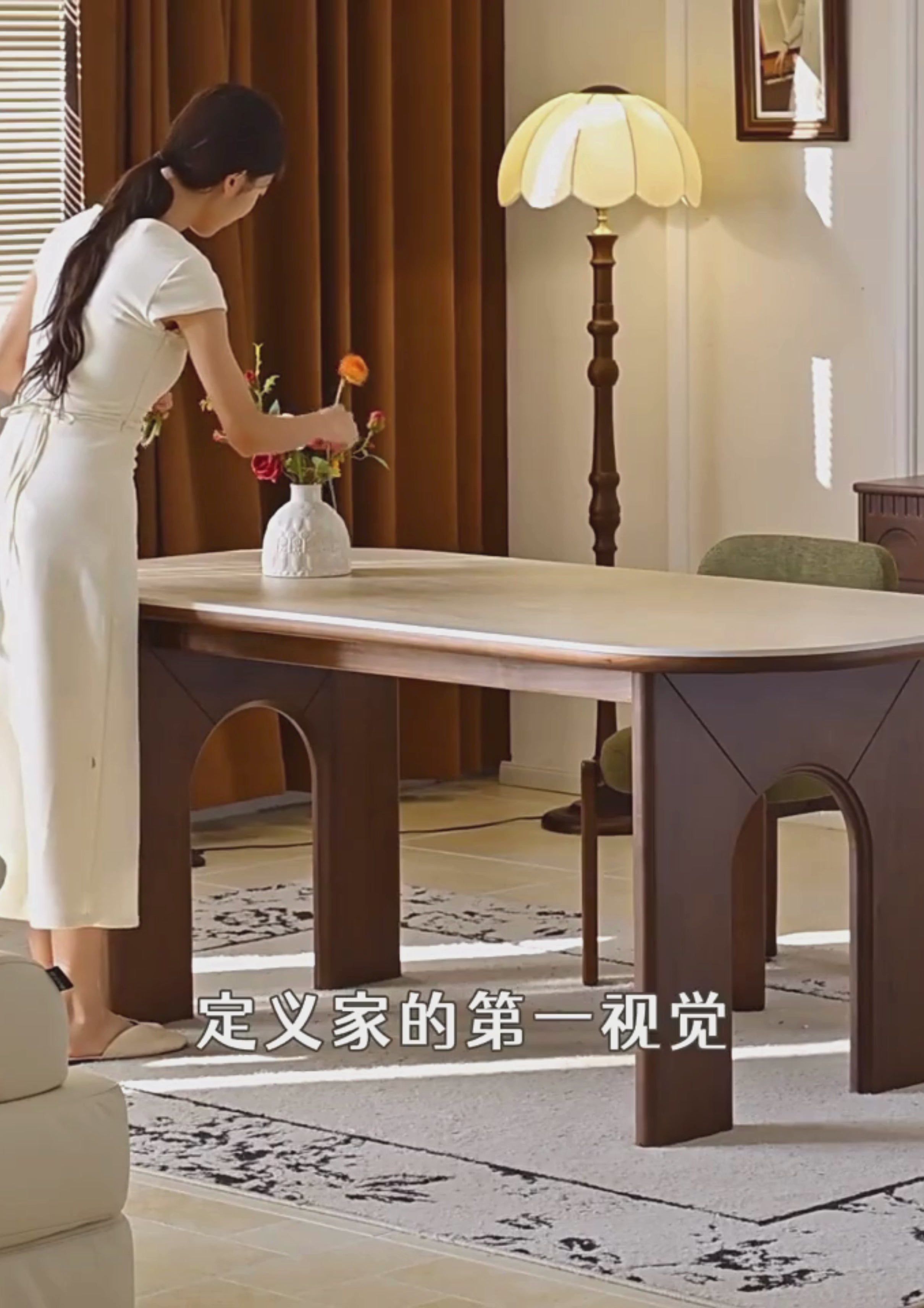 Black Walnut, Oak Solid Wood French Retro Style Dining Table
