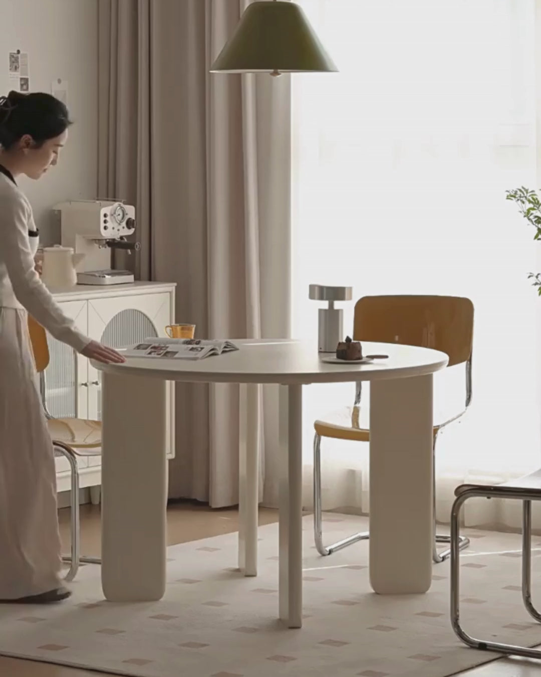 Poplar Solid Wood White Rock Board Round Dining Table