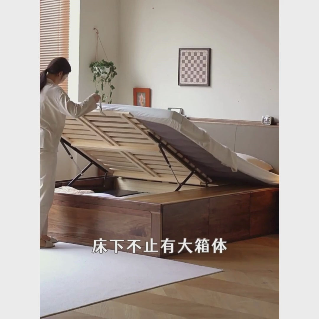 Black Walnut Solid Wood leather soft Drawer Box Bed Nordic