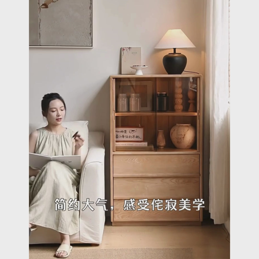 Ash Solid Wood Edge Cabinet Wabi Sabi Style