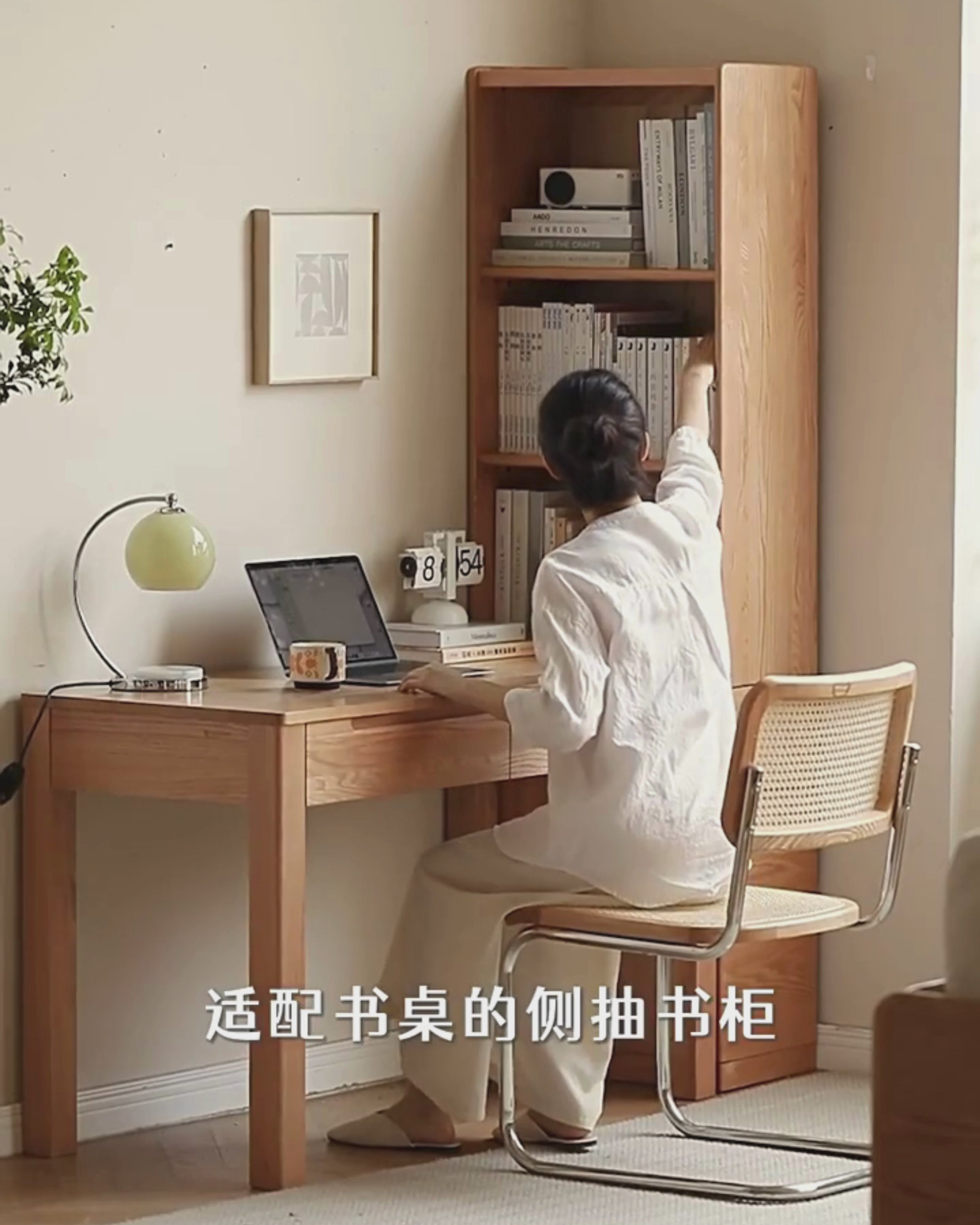 Rubberwood, Oak Solid Wood Bookcase, Floor-Standing Storage Cabinet