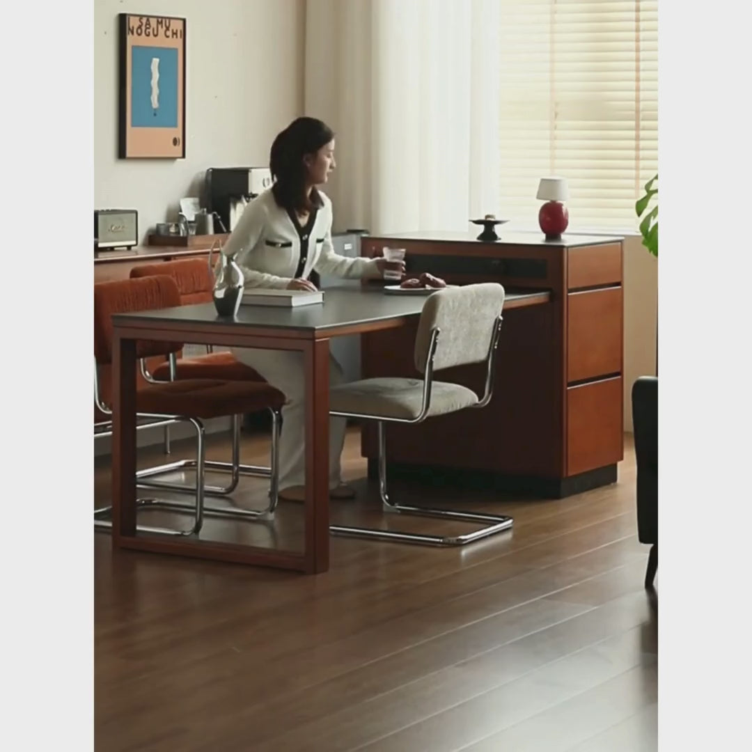 Poplar Solid Wood Island Retro Retractable Rock Plate Table Integrated.