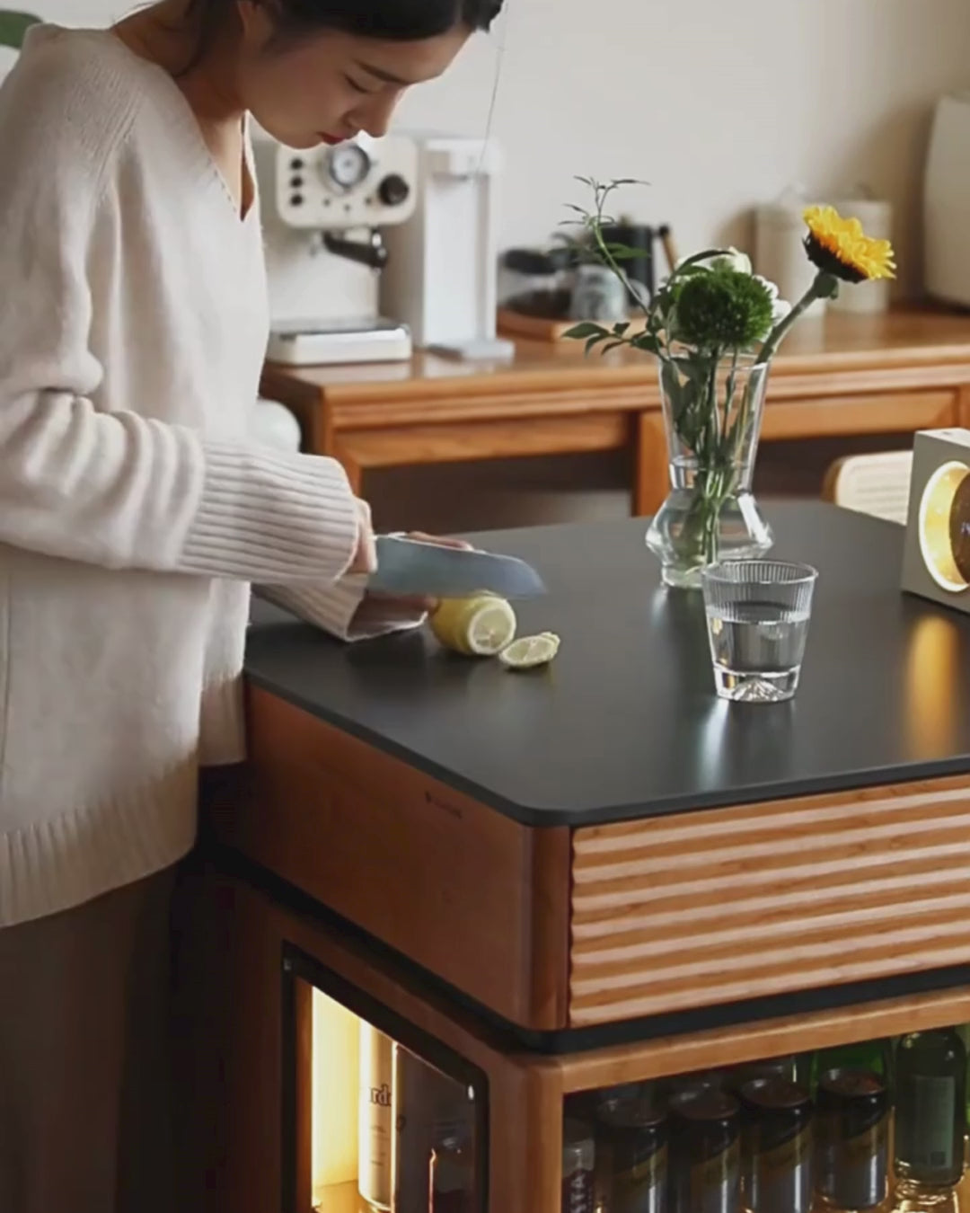 Cherry Solid Wood Island Multifunctional Bar.