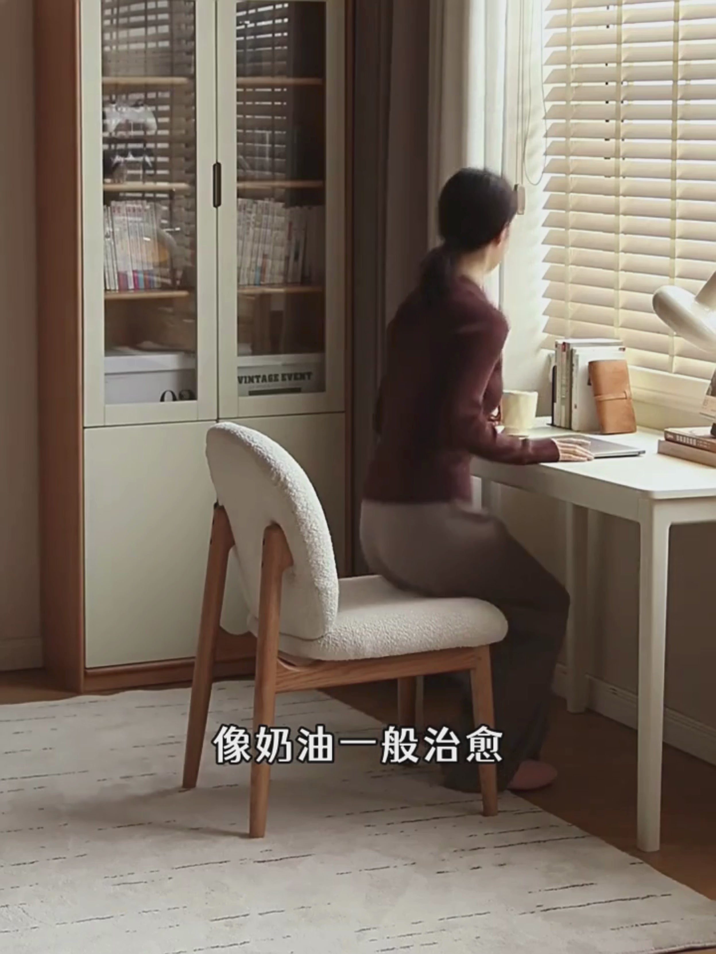 Oak Solid Wood Leisure Soft Chair Study Cream Style