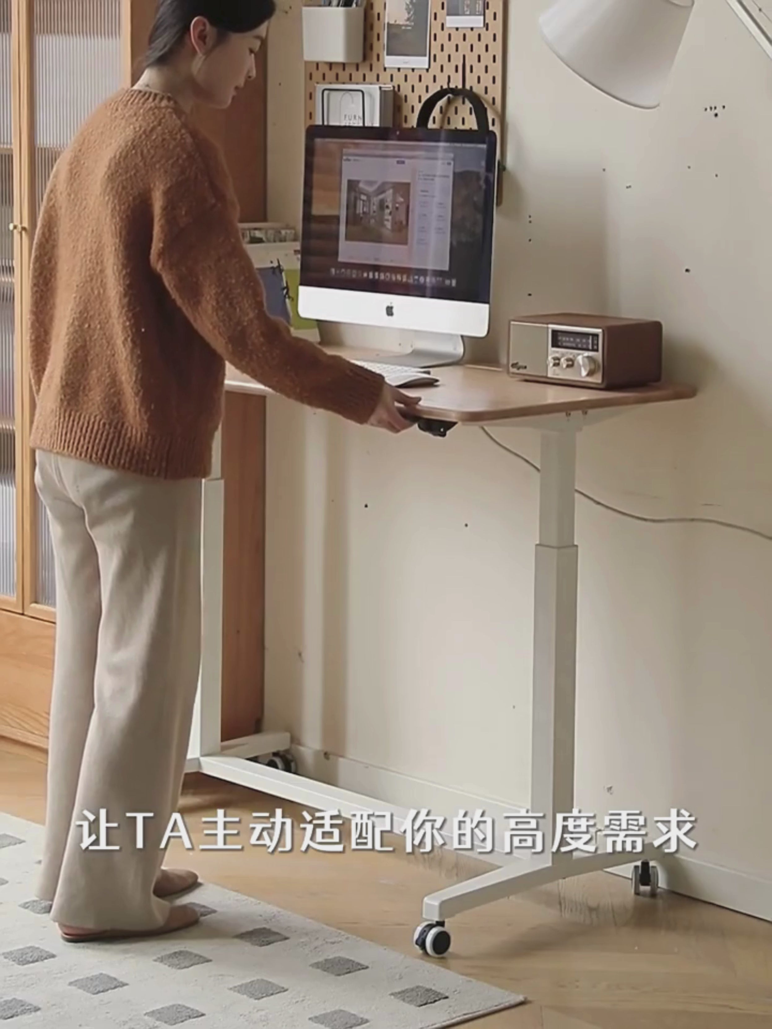 Oak, Rubberwood Solid Wood Standing Mobile Office Desk