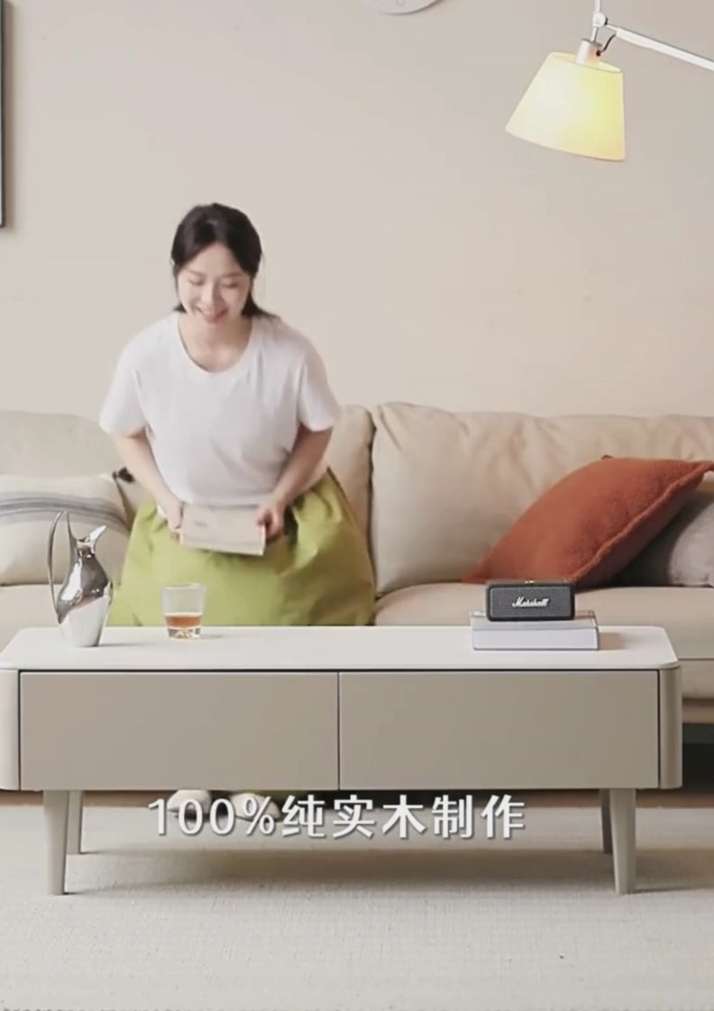 This coffee table is crafted entirely from 100% solid poplar wood imported from North America, ensuring durability and a clear, detailed grain. It features paulownia wood for structural support, known for its resistance to corrosion and deformation, and New Zealand pine for the frame, offering toughness and stability. The combination of these high-quality materials guarantees a sturdy, long-lasting piece with excellent physical performance.