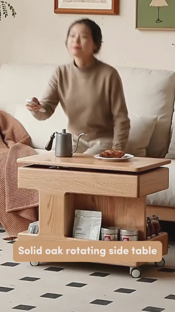 Oak, Cherry, Black Walnut, Ash Solid Wood Rotating Mobile Side Table