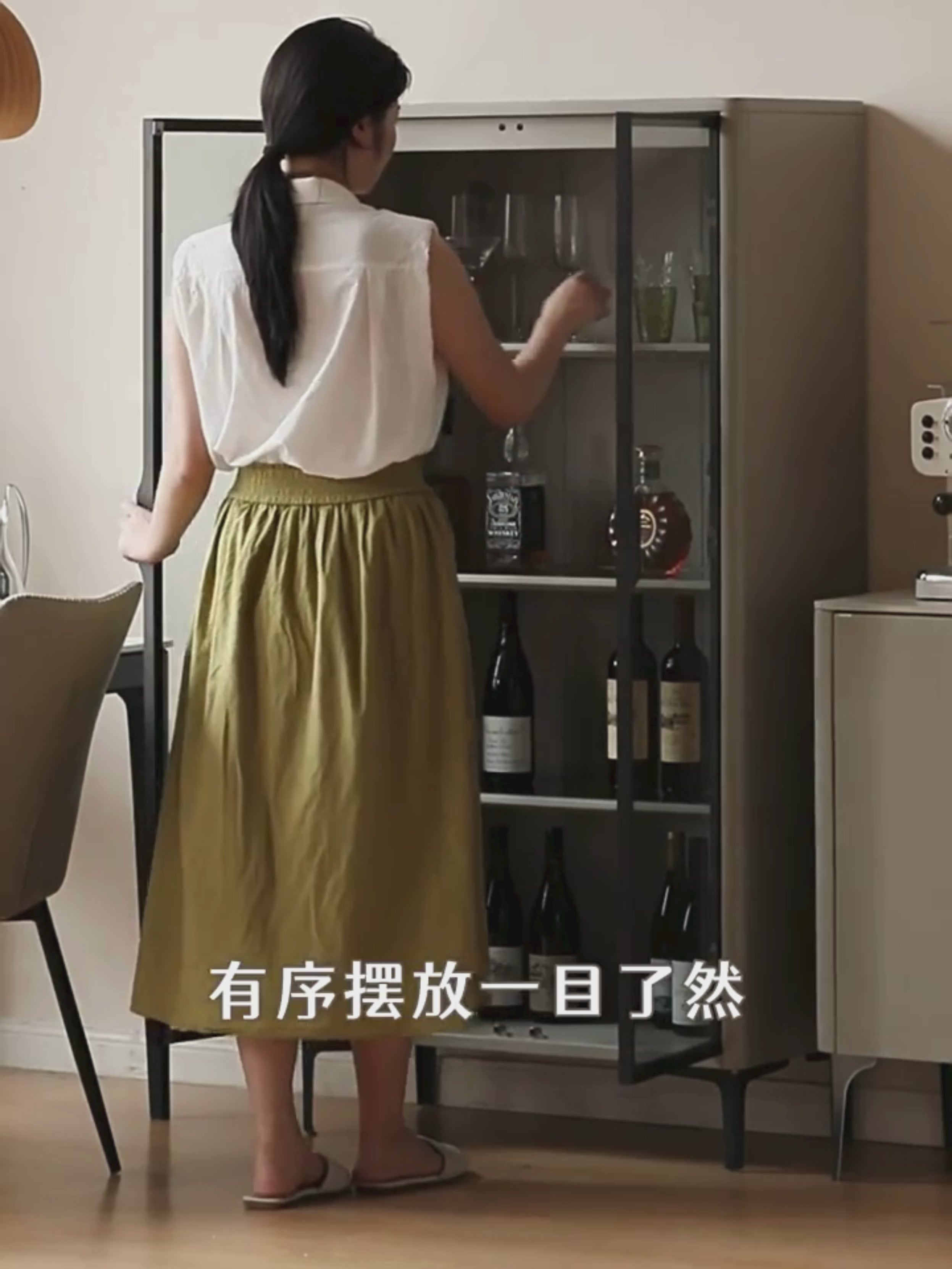 You have the final say on what to put in the high-value light luxury display wine cabinet. One cabinet is multi-purpose, ideal for storage, movable shelf, three-speed adjustable LED light with light touch, tempered glass cabinet door 3c certification) can store white wine, red wine, and whiskey.