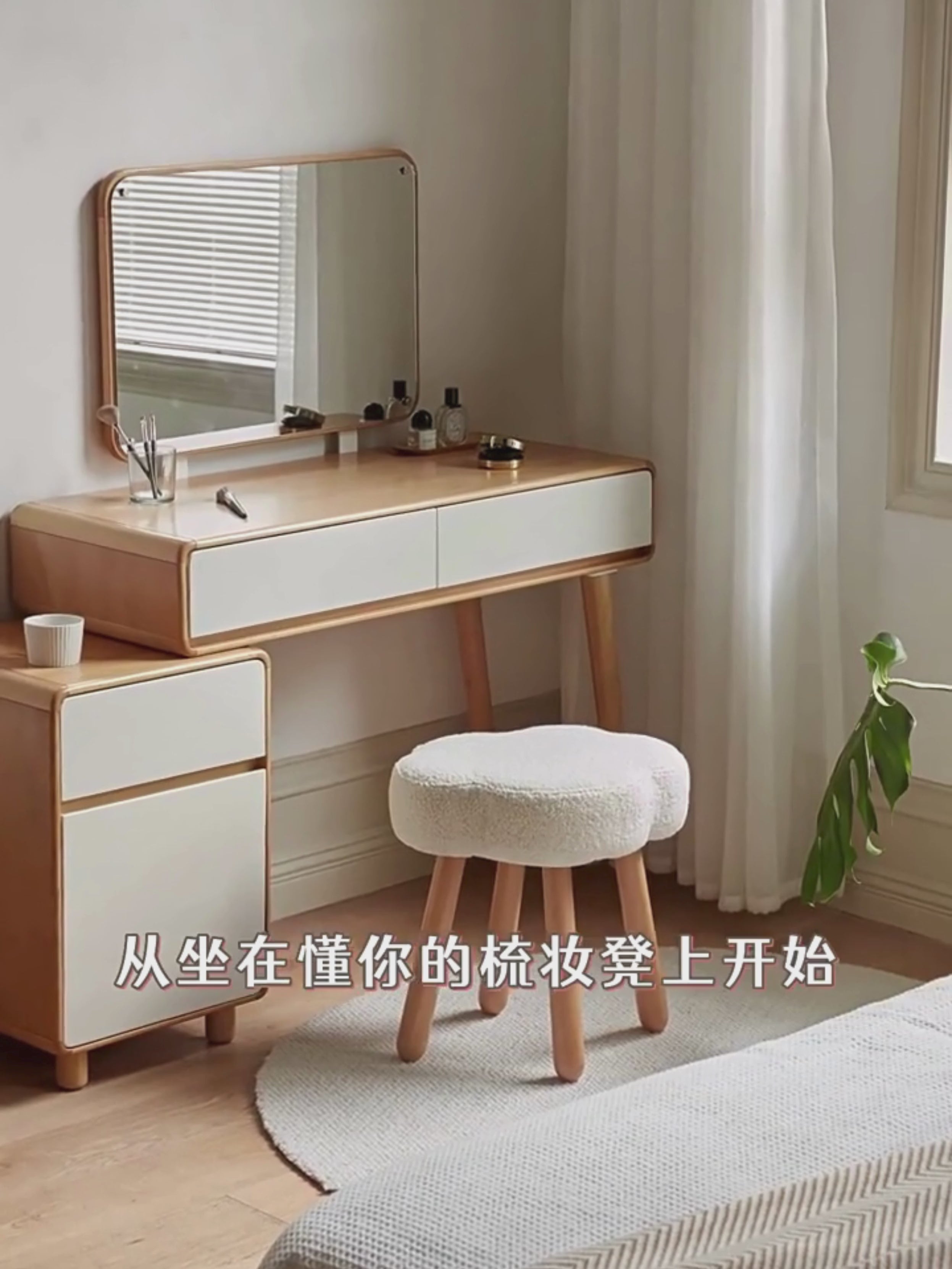 Beech, birch solid wood Nordic lamb velvet cloud makeup stool.