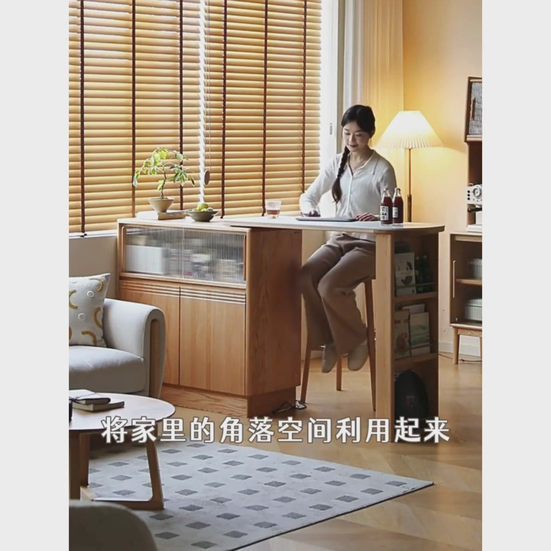 Oak Solid Wood Retractable Rock Plate Bar Table