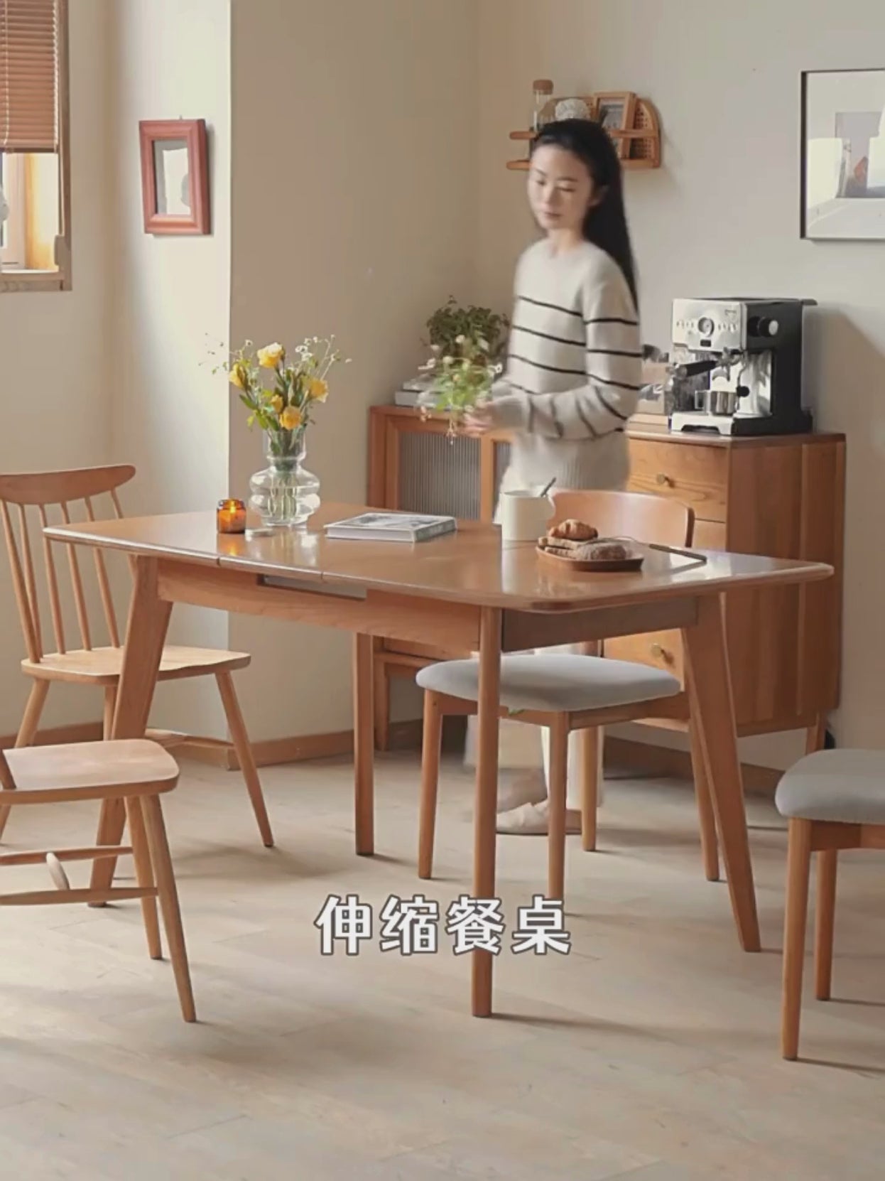 Cherry Wood Retractable Dining Table Antique Style