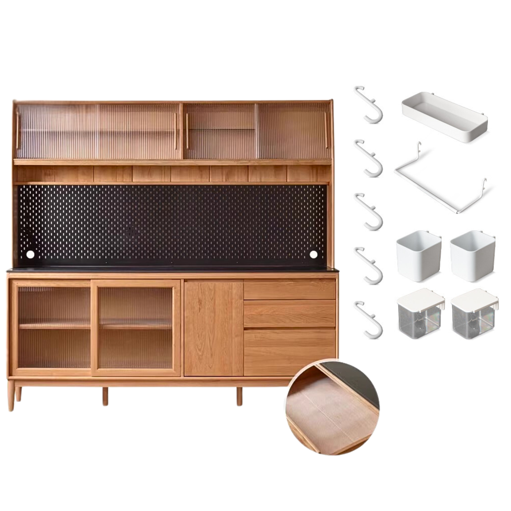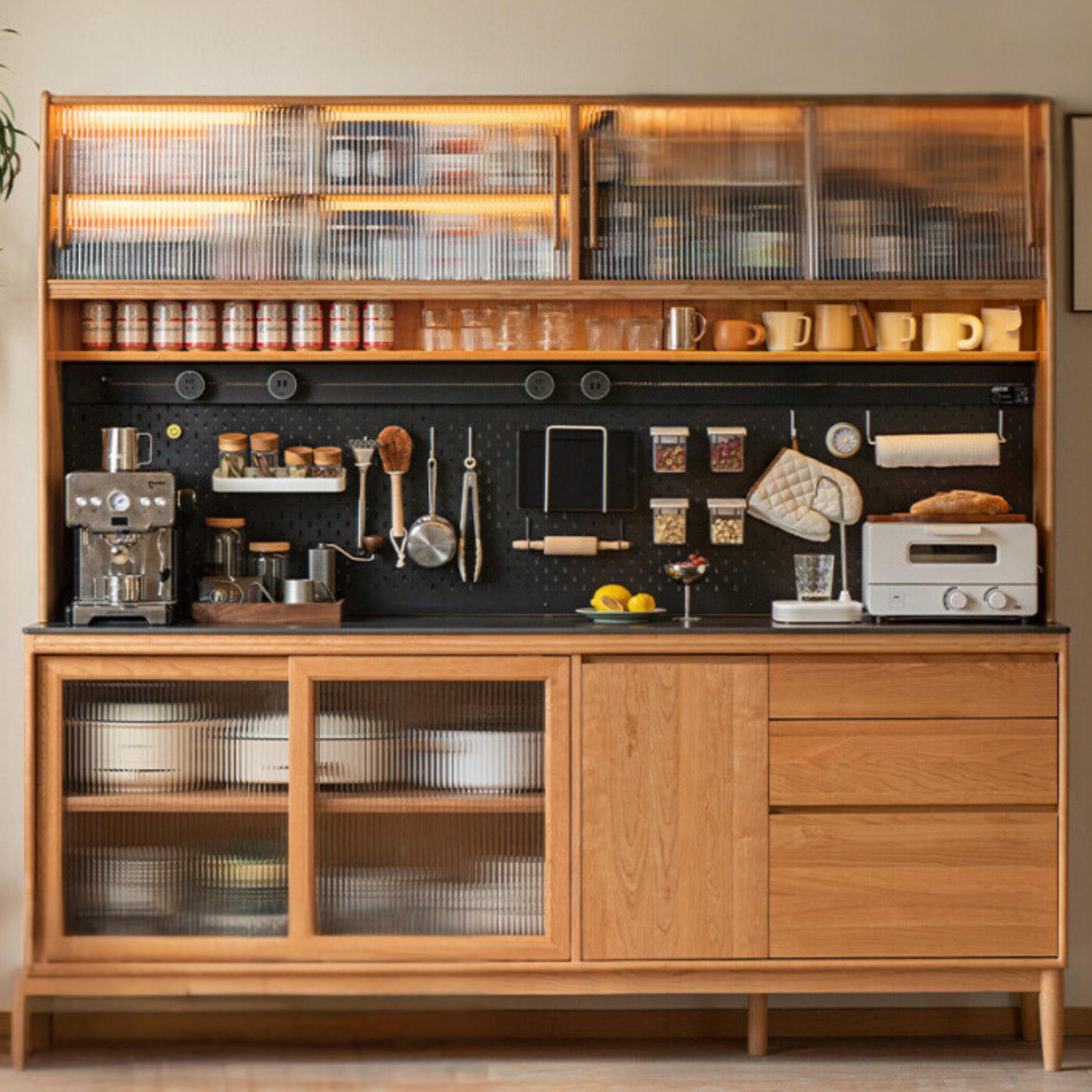 Cherry, Oak Solid Wood Rock Board Dining Cabinet Integrated High