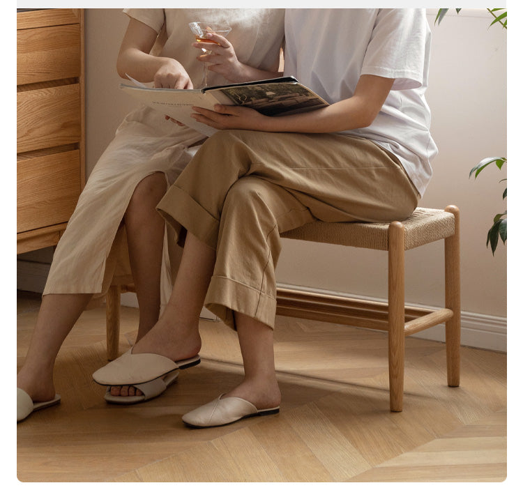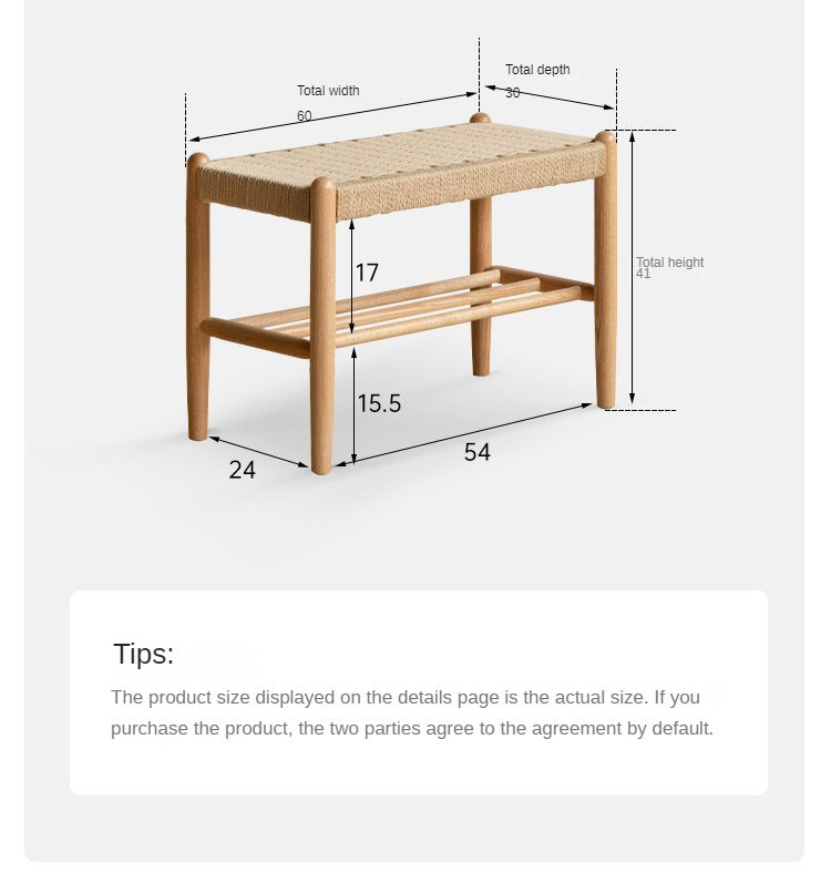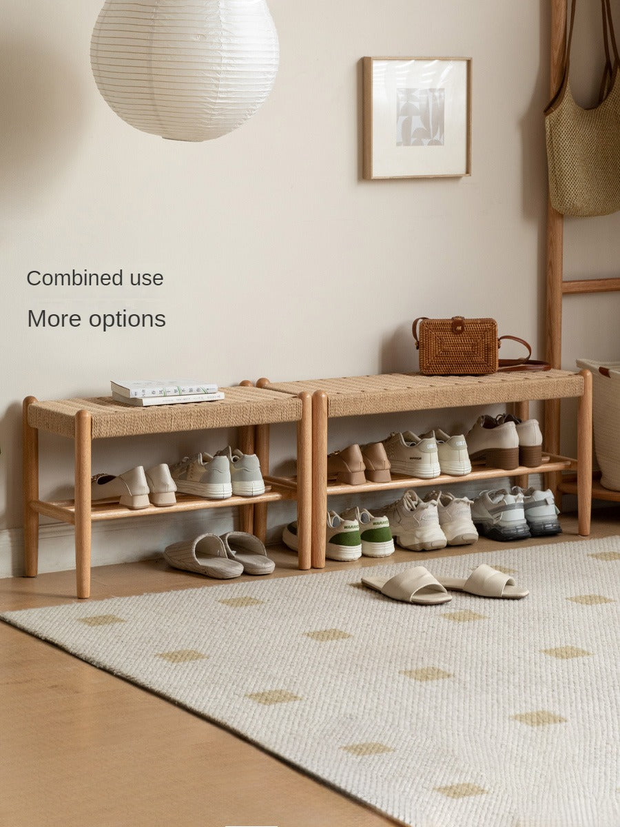 Solid Wood Rope Replacement Shoe Stool Modern Simple Living Room Double-layer Shoe Rack Small Apartment Leisure Low Stool.