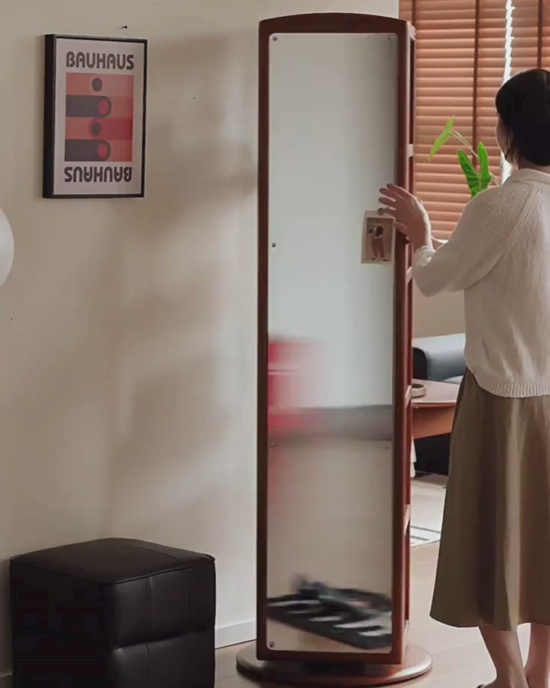 Poplar, Cherry Solid Wood Rotating Multi-Function Retro Mirror Bookshelf