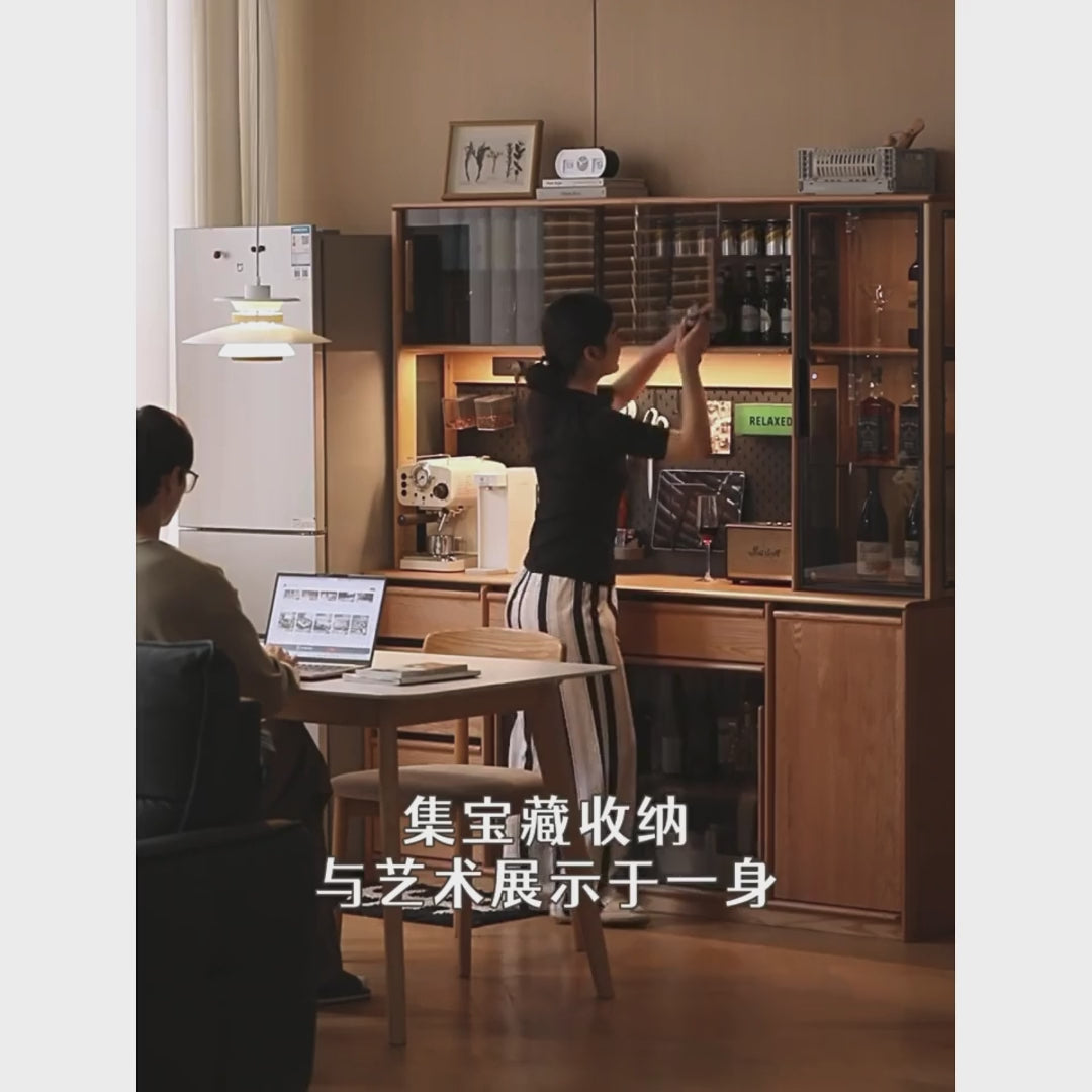 Oak Solid Wood Sideboard Glass Storage Cabinet