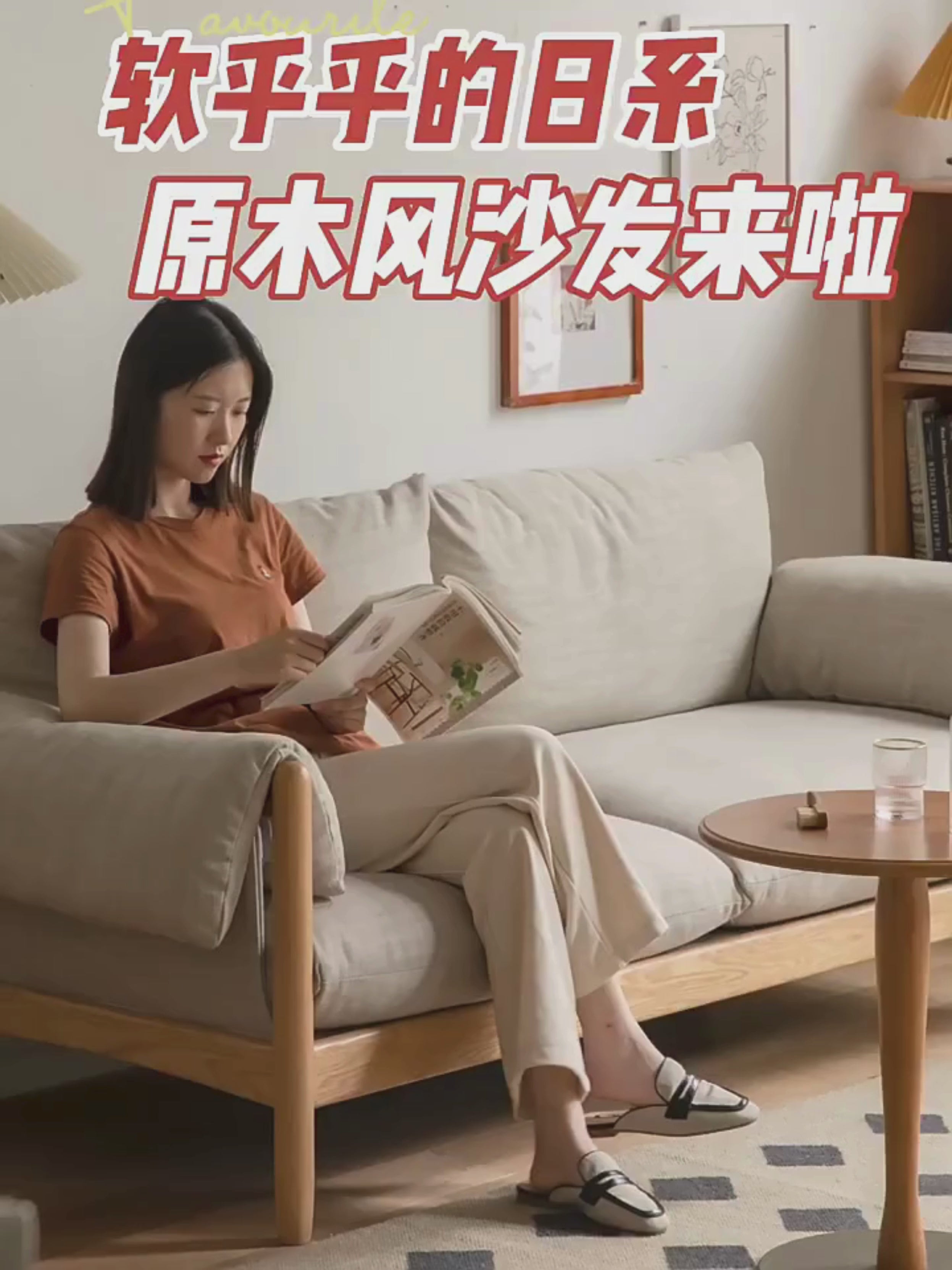 Oak Solid Wood Fabric Sofa.