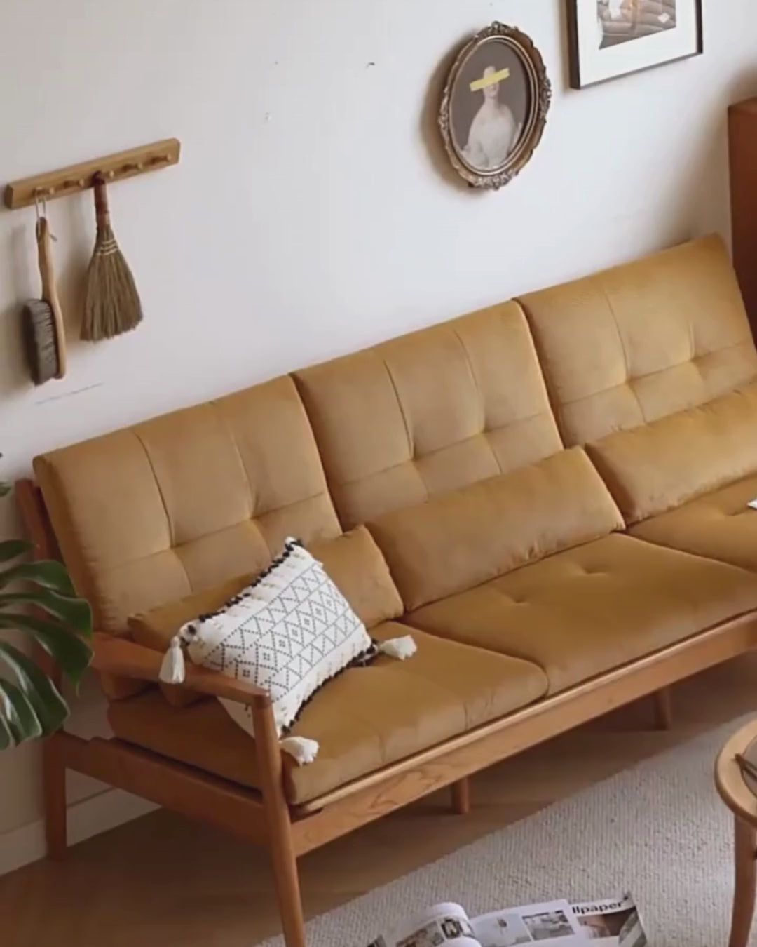Oak Solid Wood Rattan Vintage Dual-purpose Sofa.