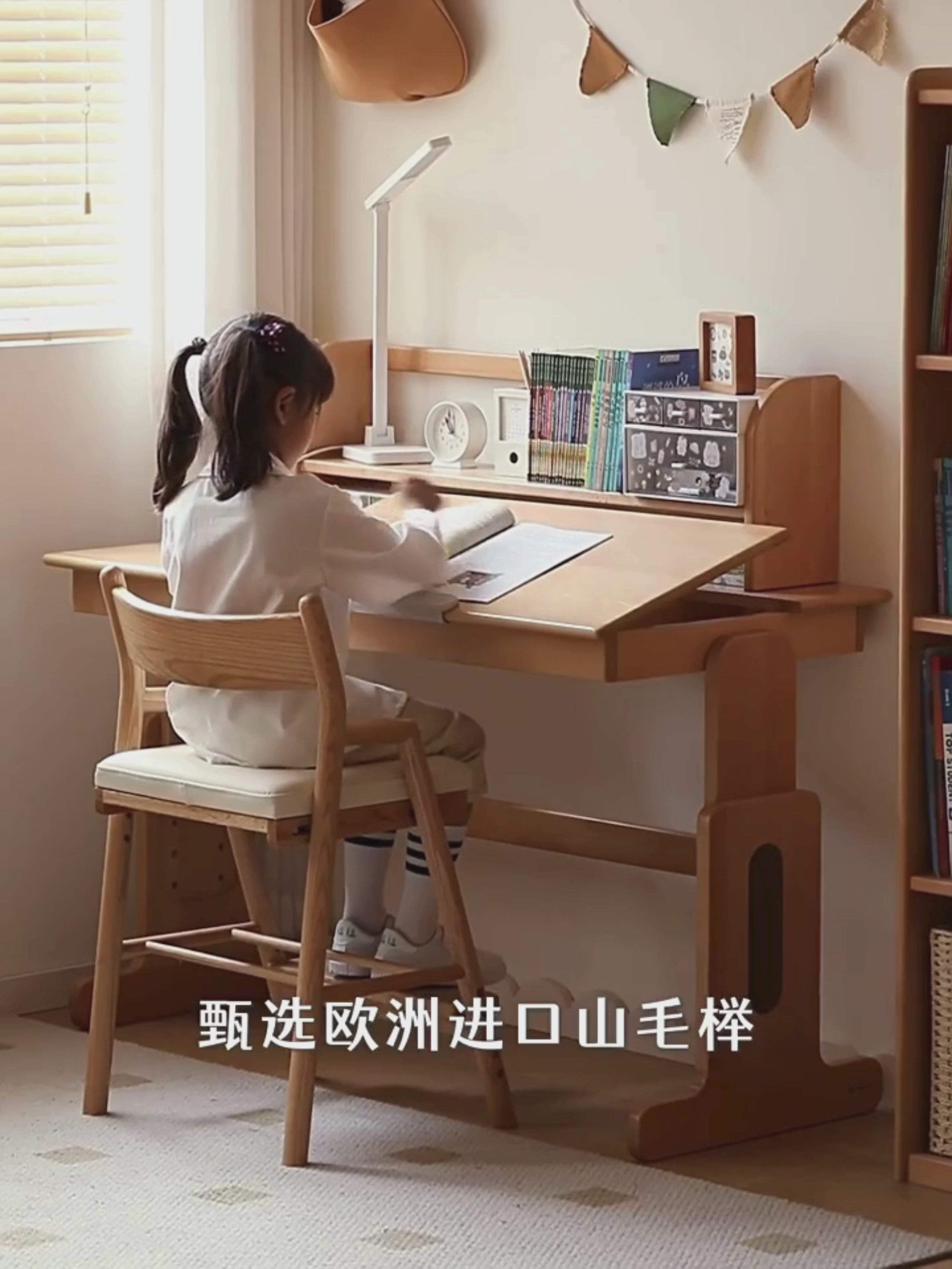 Beech wood is imported from Europe, the wood grain is fine and straight, the texture is uniform, the color is warm, and the hardness is in the upper middle of the wood, it is beautiful and durable.