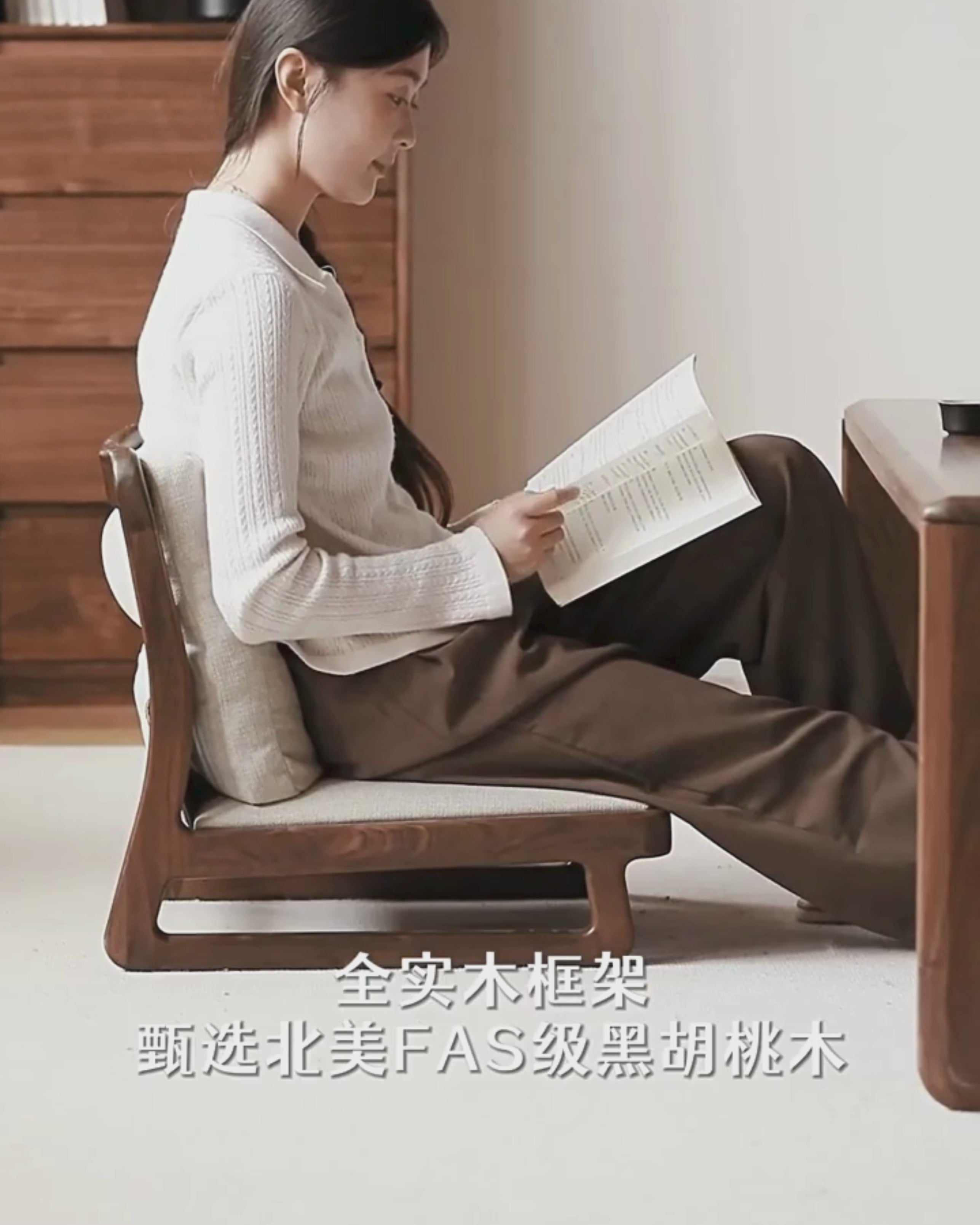 Black Walnut, Oak Solid Wood Tatami Tea Chair Low Back