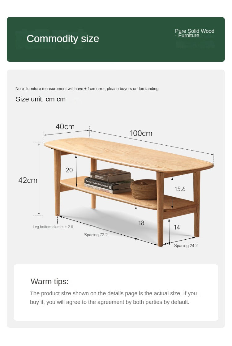 Oak Solid Wood Minimalist Ultra Narrow Coffee Table
