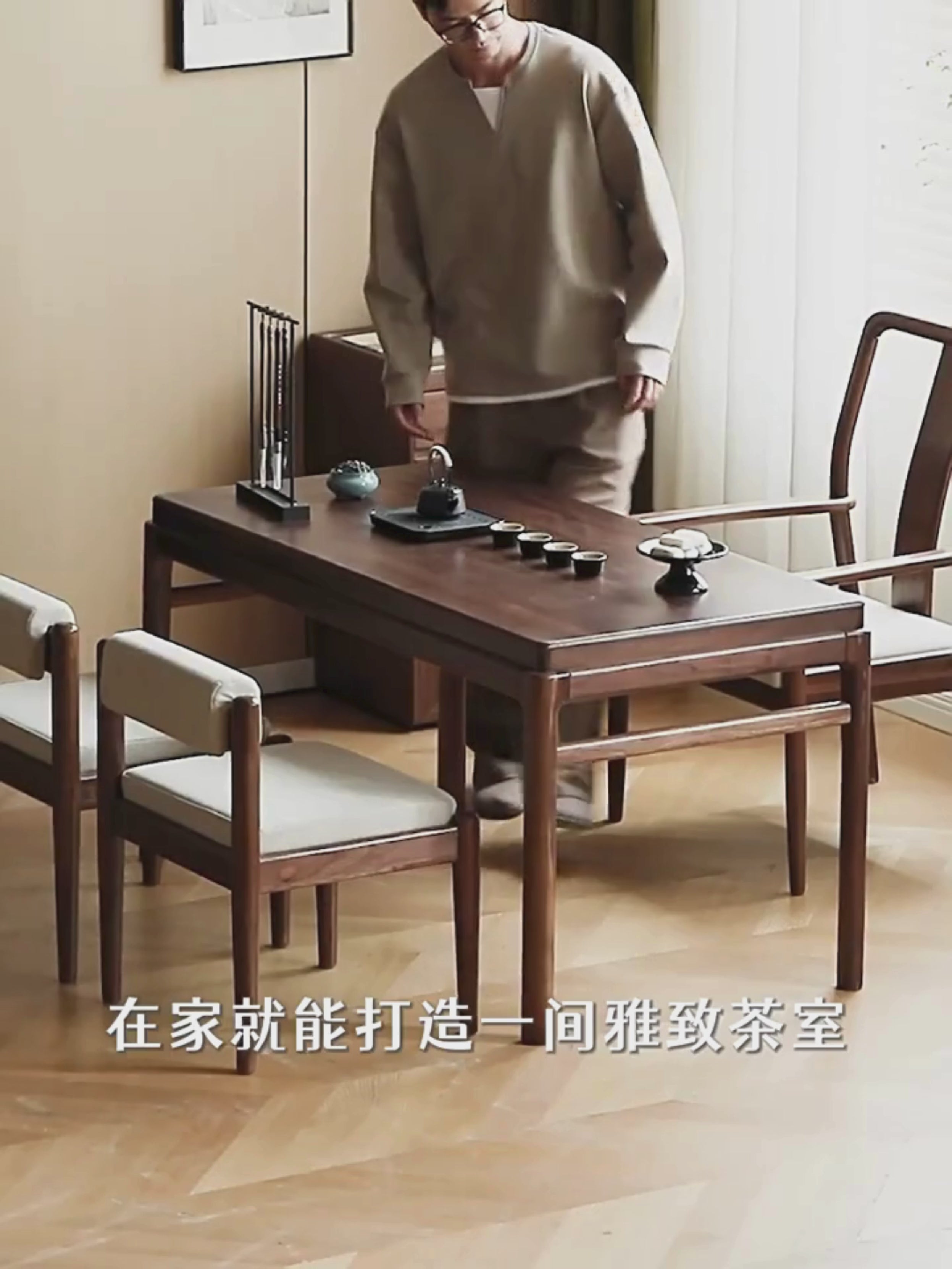 Black walnut solid wood tea table living room new Chinese tea table dining table dual-purpose home black walnut tea table and chair combination.