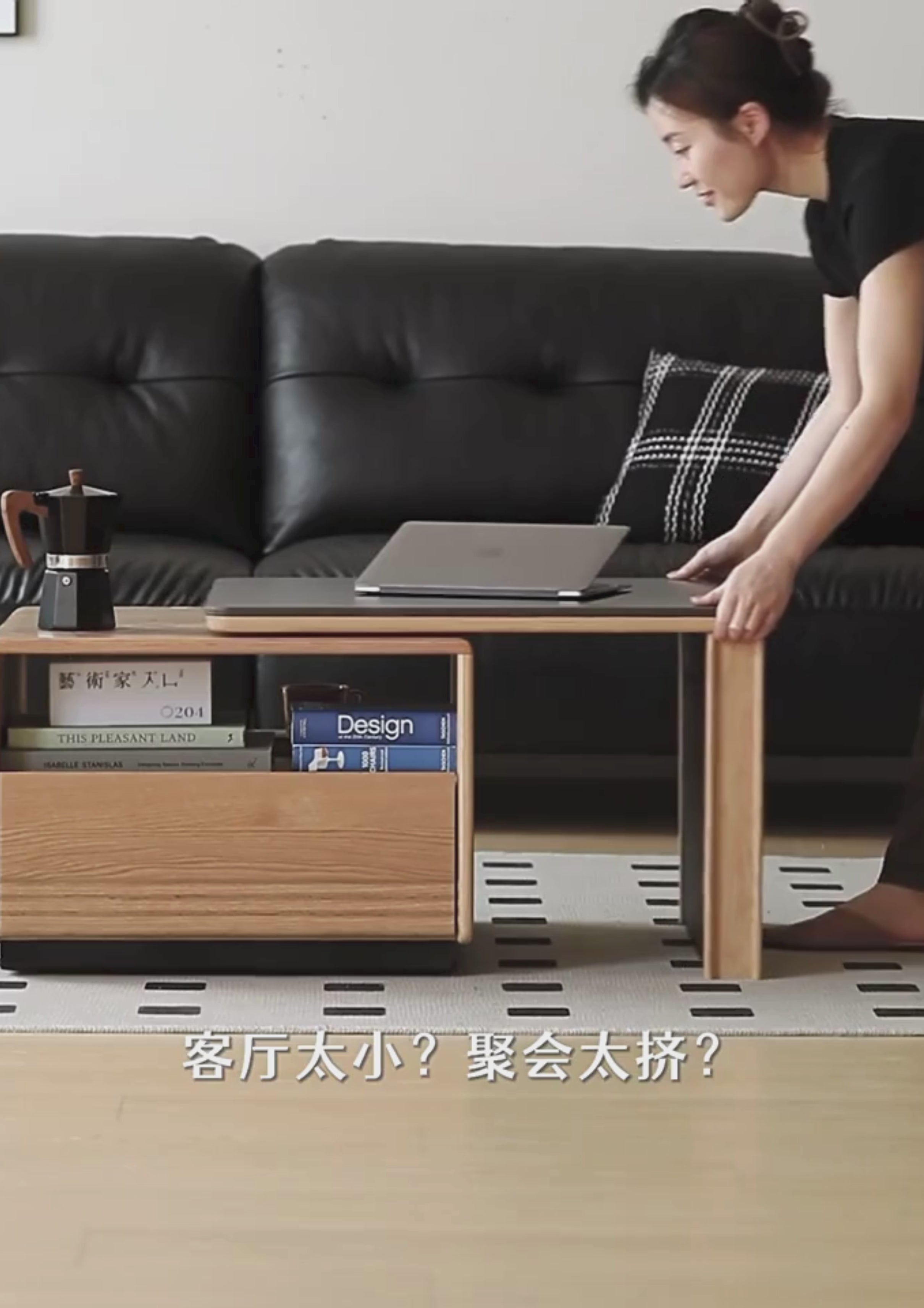 Beech Solid Wood Removable Rock Plate Telescopic Tea Table