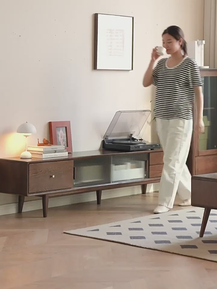 If there are too many things in the living room, do you have to separate them? NONONO! With this large-capacity TV cabinet, storage and organization are no longer a problem! The spacious storage table helps you display your favorite things, the large-capacity locker can enlarge pieces of audio-visual equipment, and the double-layer drawers can be divided into categories for the living room.