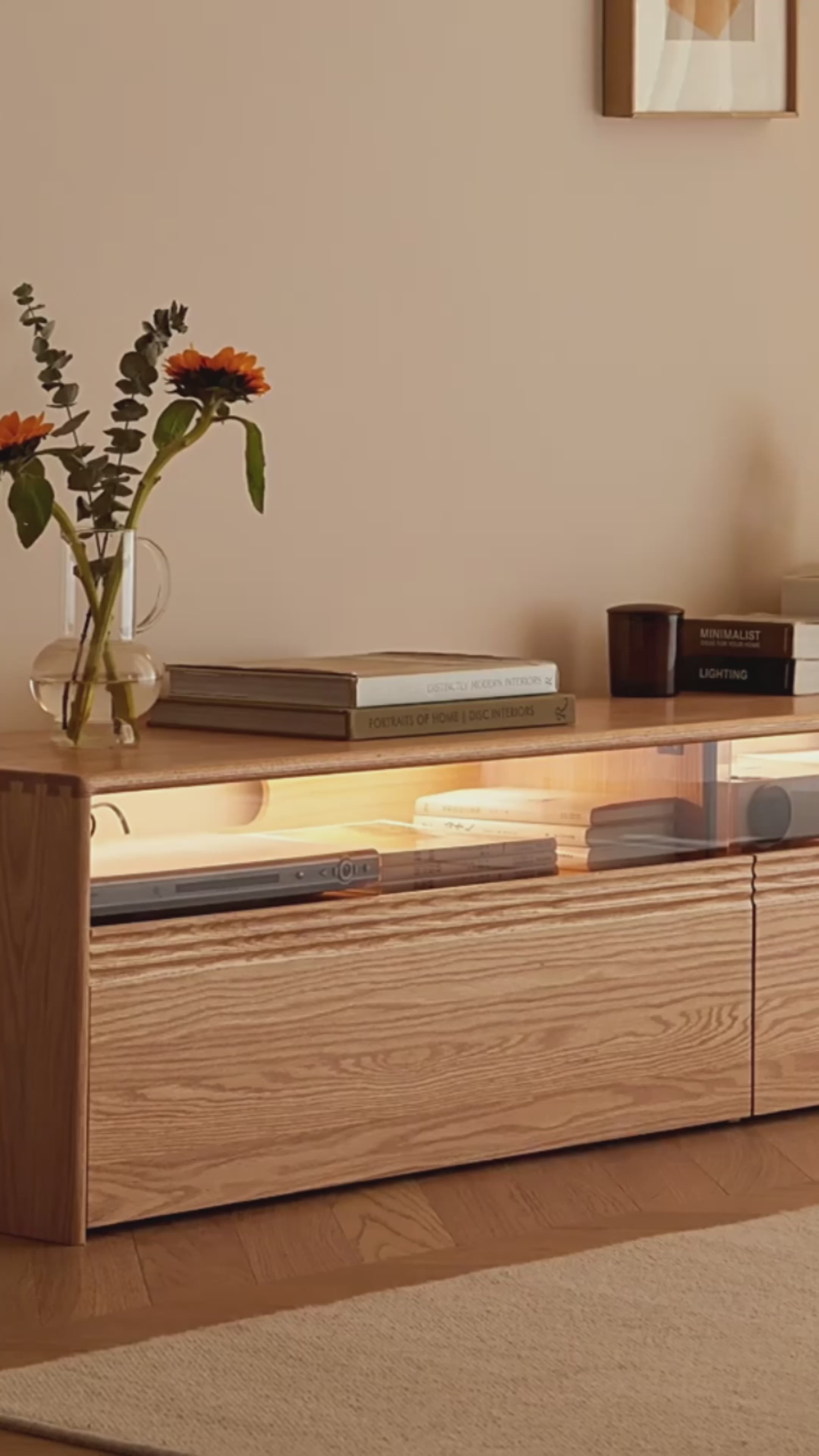 Oak, Cherry Wood, Black Walnut, TV Stand Floor Cabinet