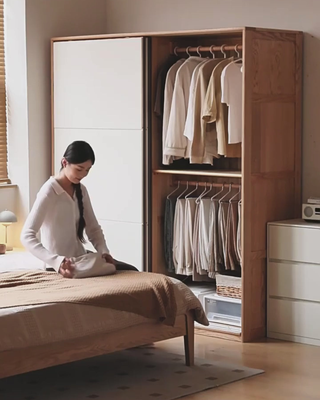 Oak Solid Wood Sliding Door Storage Wardrobe.