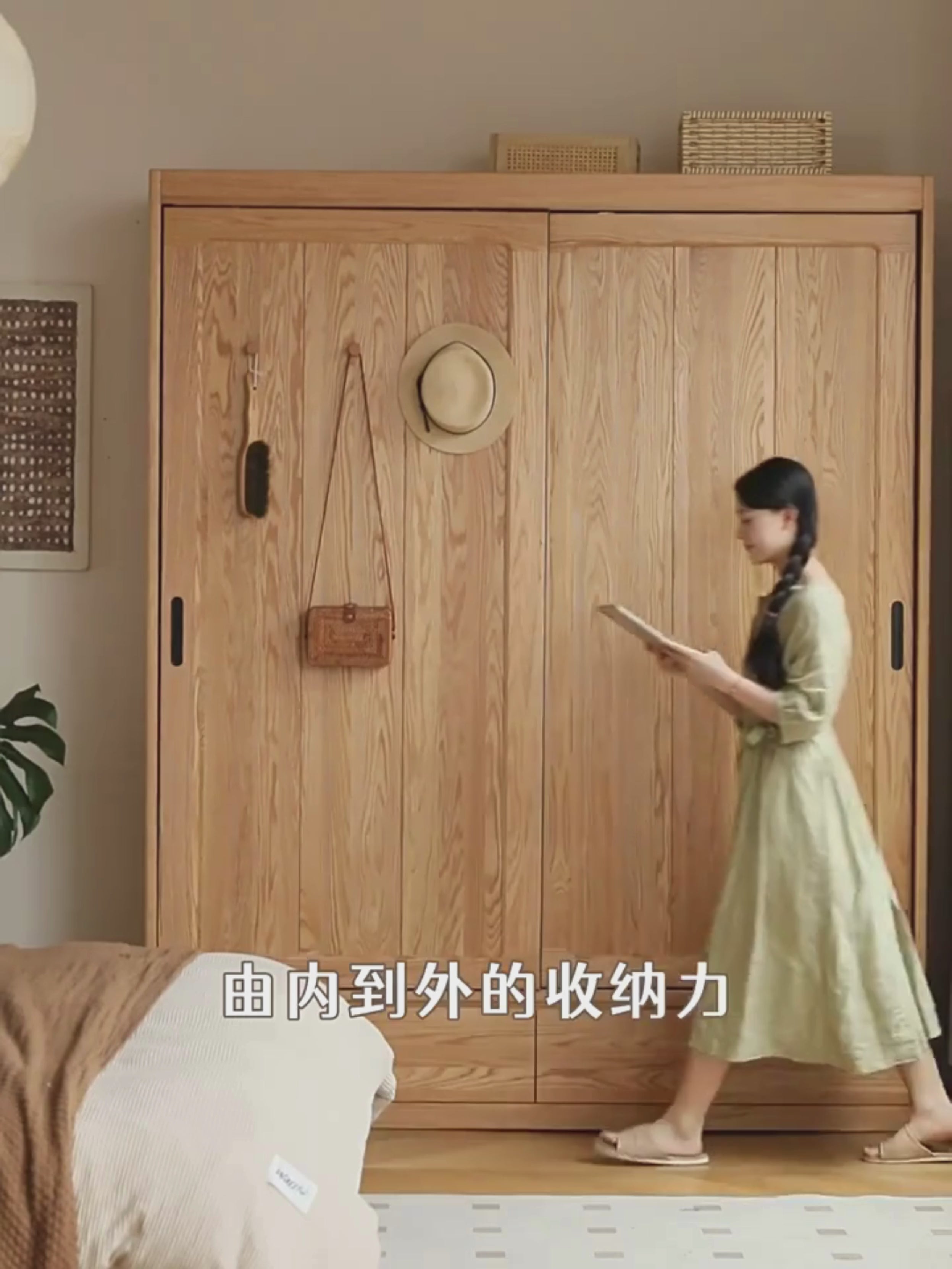 Oak, Ash Solid Wood Wardrobe Sliding Door Modern.