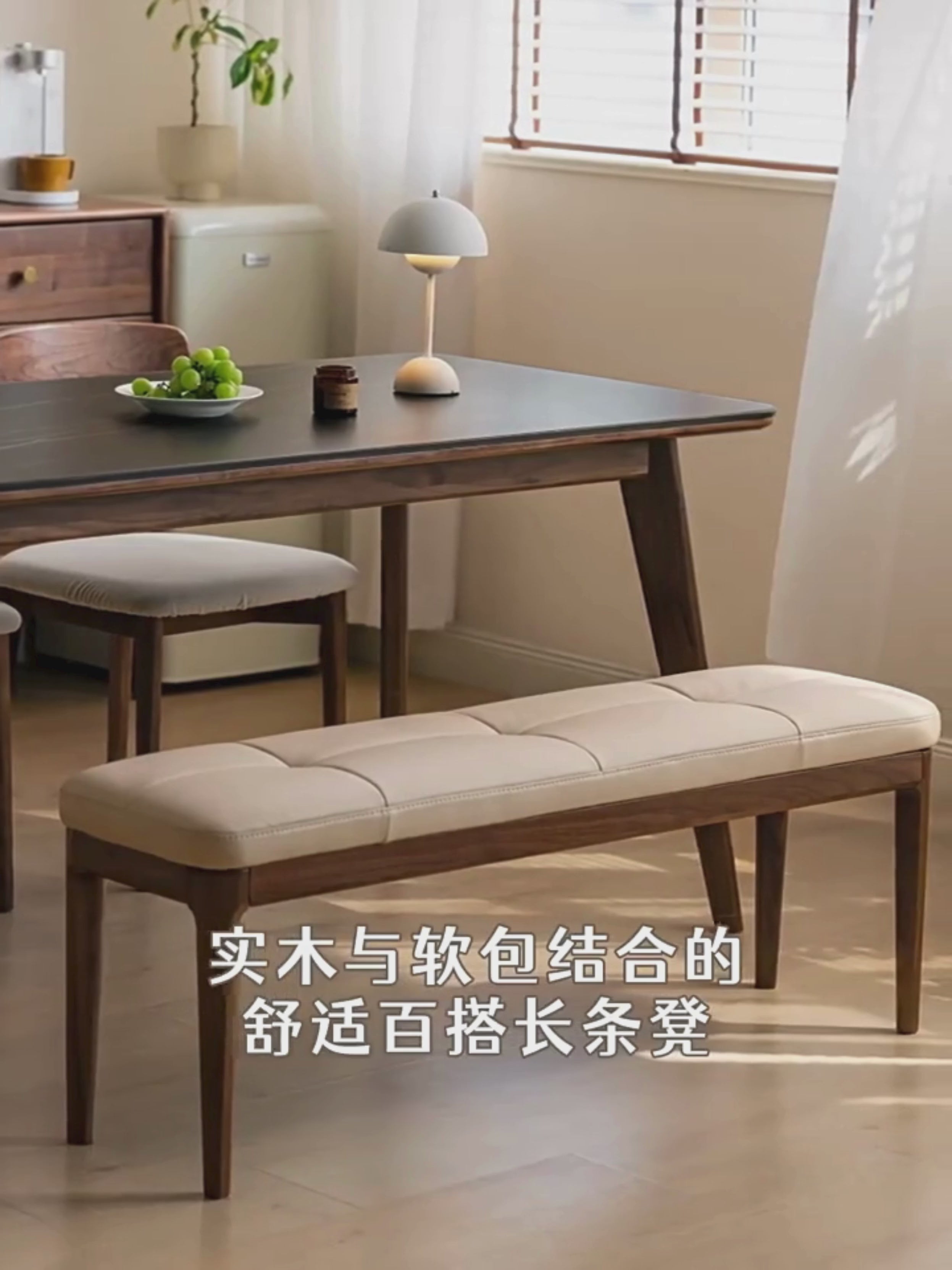 Solid wood bench black walnut bench upholstered bed end stool simple shoe changing stool eating stool.