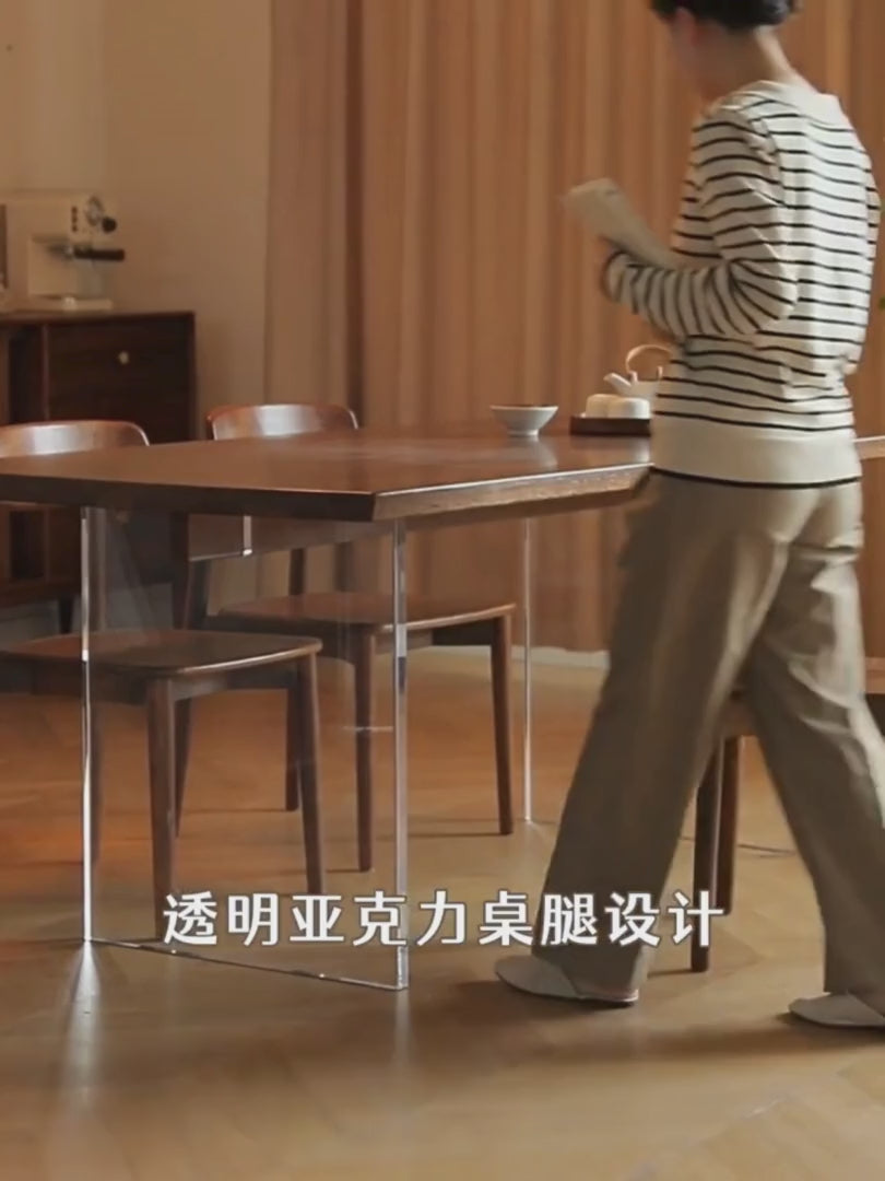 Black Walnut, South American Walnut, Oak Solid Wood Acrylic Suspension Dining Table