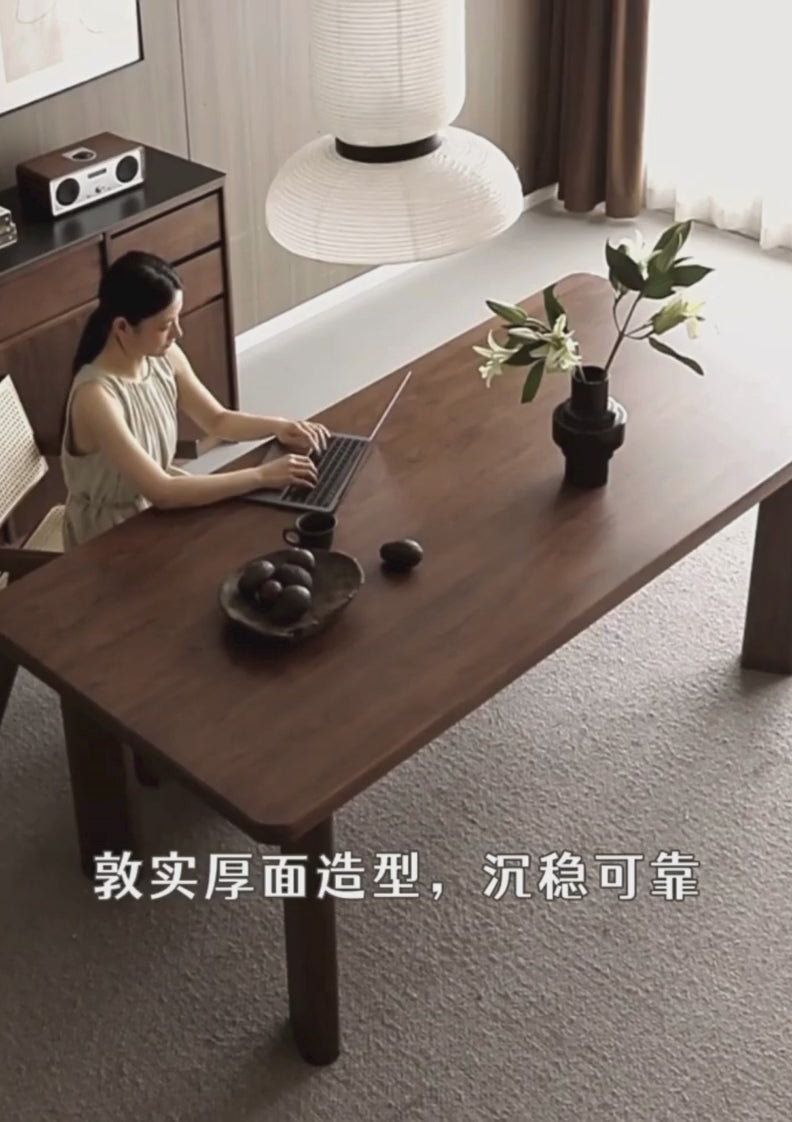 Black Walnut, Sandalwood Solid Wood Wabi Sabi Style Large Board Dining Table