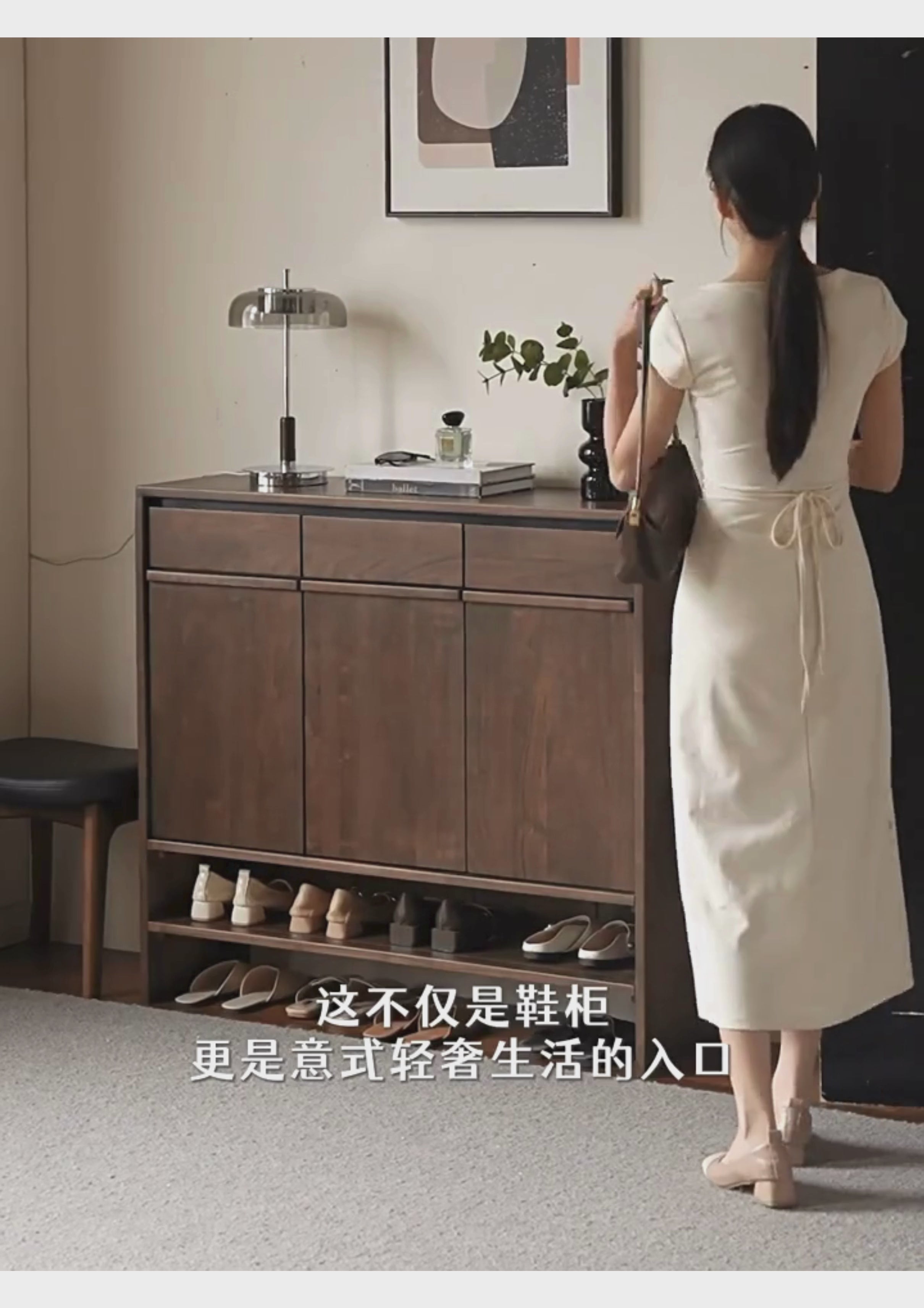 Black Walnut, Oak Solid Wood Italian Style Light Luxury Shoe Cabinet