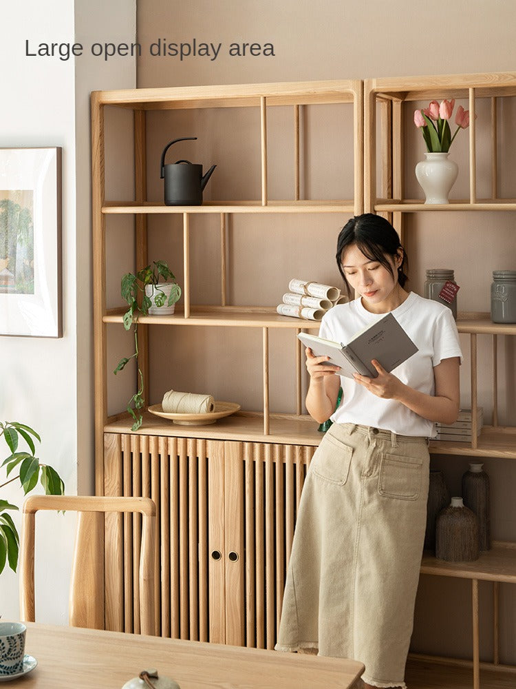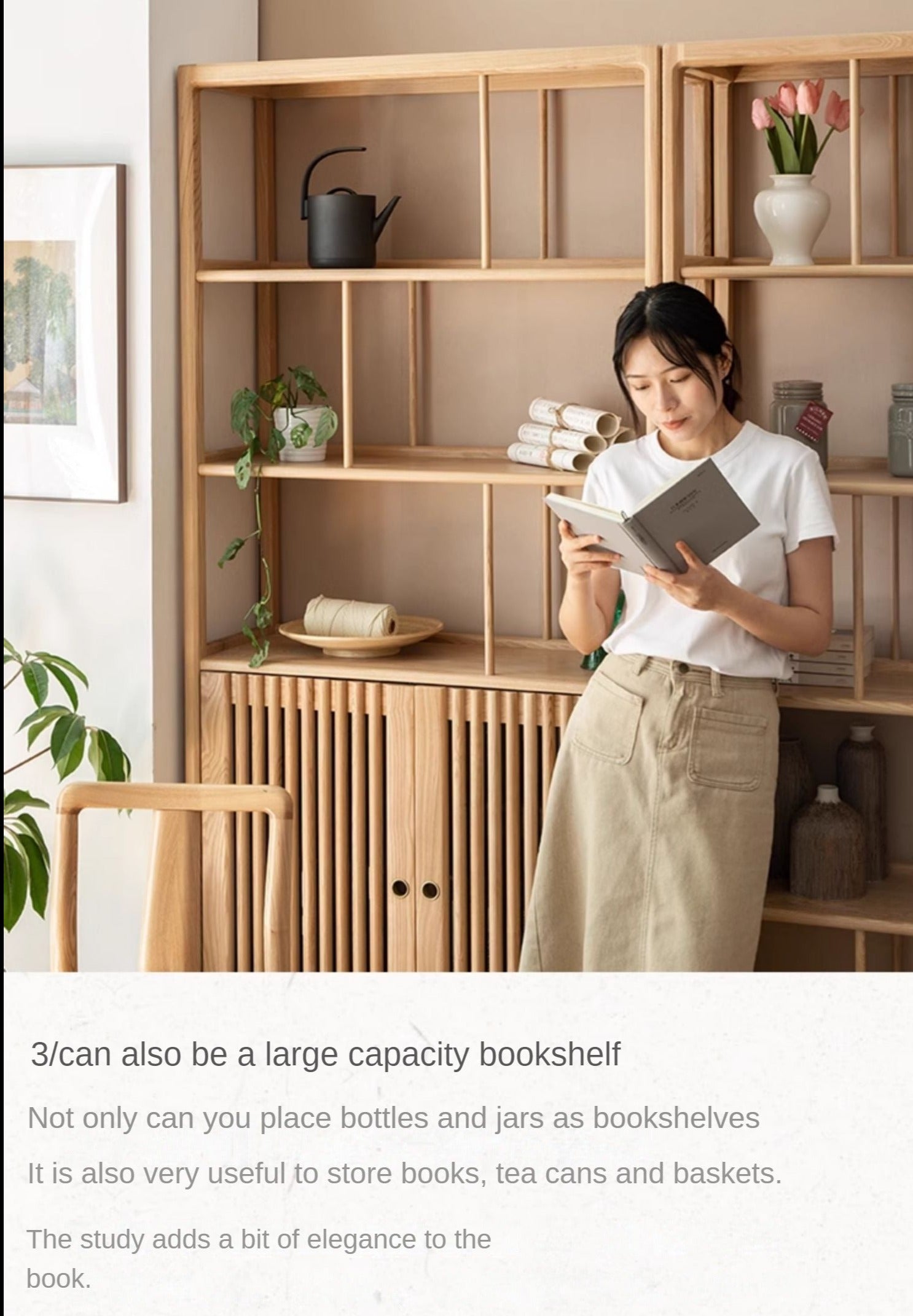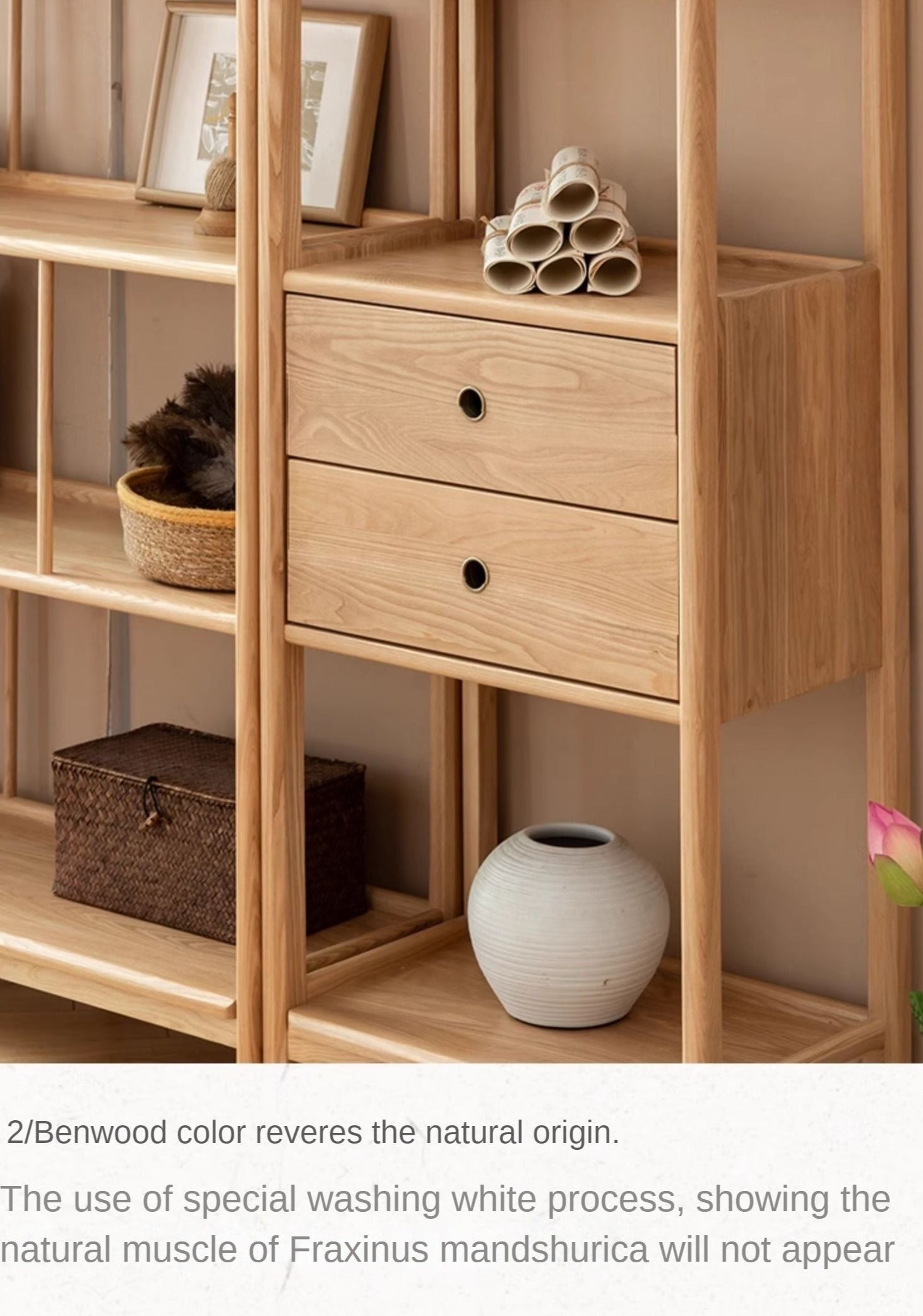 Ash Solid Wood Bookshelf Combined Bookcase Display Cabinet Wall Shelf