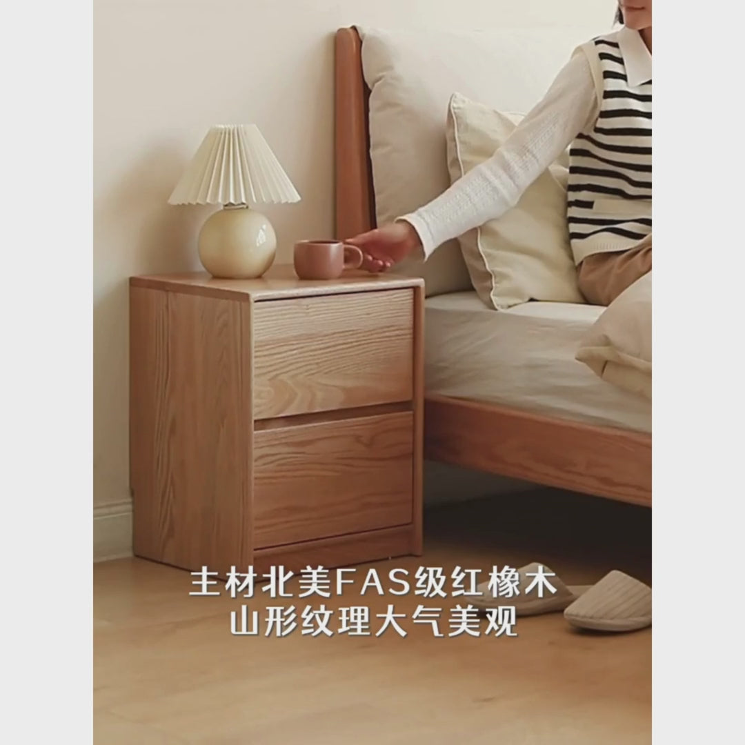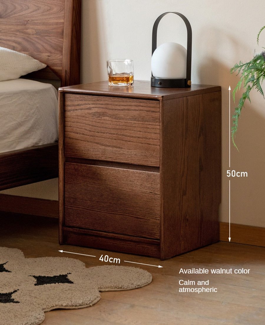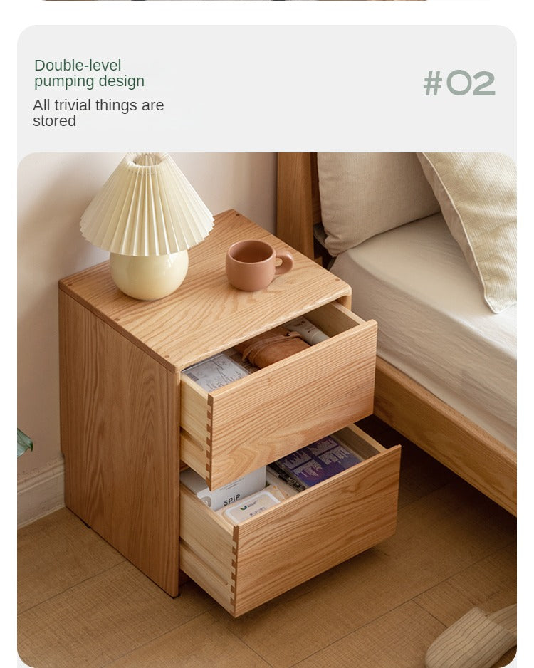 Oak Solid Wood Two Drawer Nightstand.