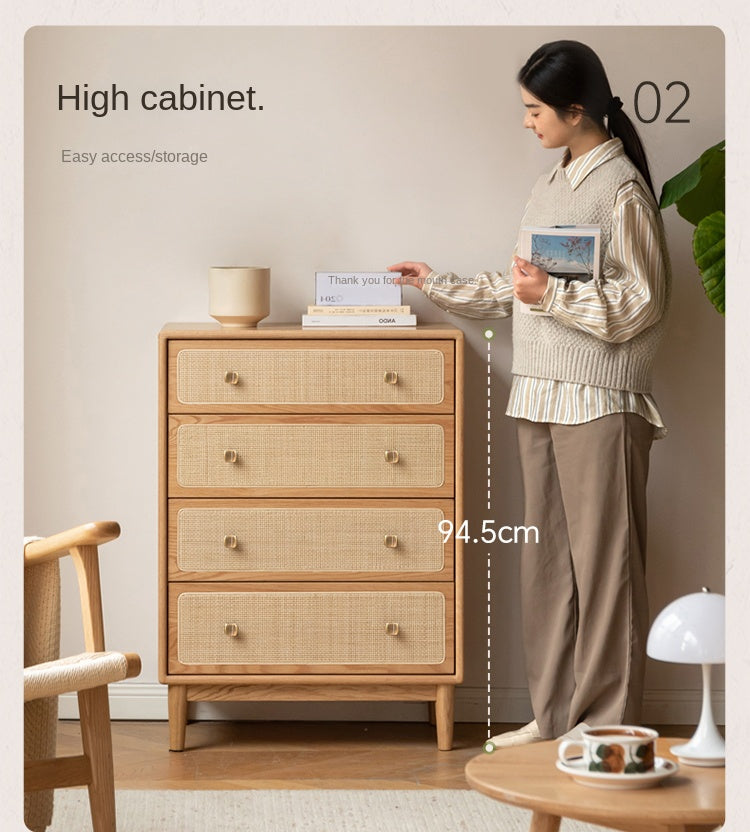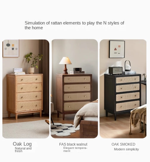 Oak, Black Walnut Solid Wood Cabinet Modern Rattan Storage Cabinet.
