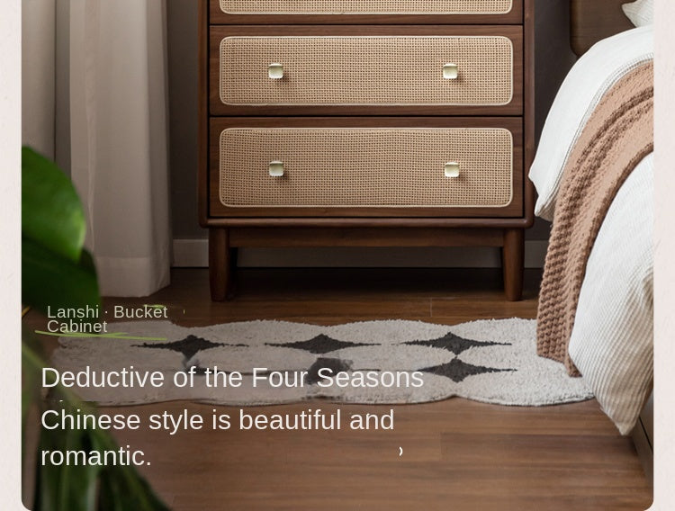 Lanshi-Chest of Drawers North American black Walnut + rattan elements North American FAS grade black walnut simulation breathable rattan can be used as a TV cabinet.
