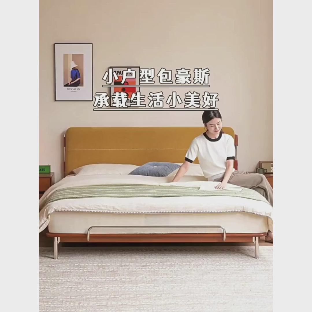Poplar Solid Wood Soft Back Fabric Chenille Bed Bauhaus Style