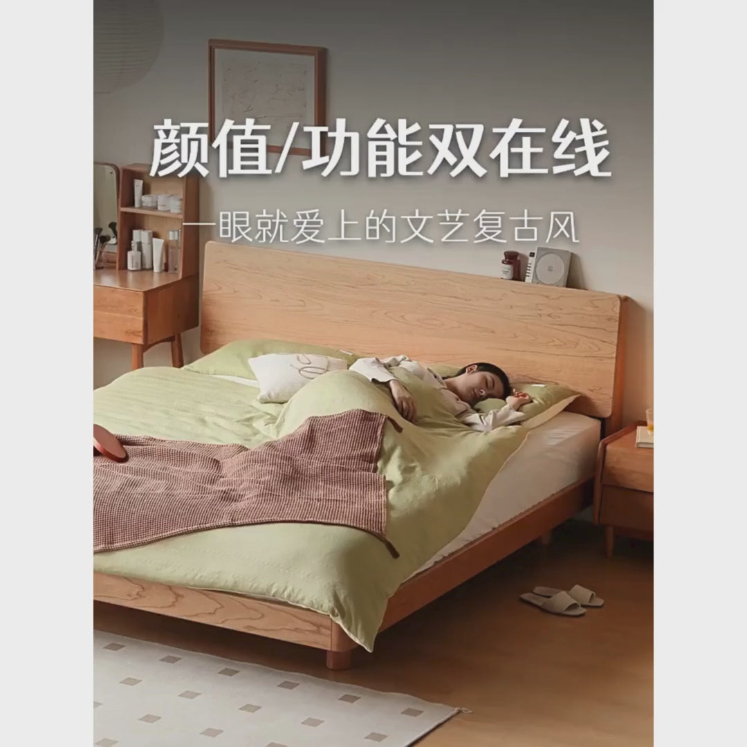 Cherry Solid Wood with Light Floating Bed Retro Simple