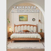 Cherry Solid Wood Genuine Leather, Velvet French-Inspired Scalloped Headboard Bed